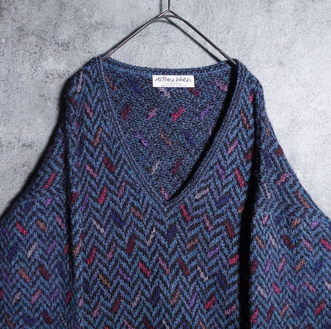 マルチカラーのジグザグVネックデザインニットが入荷です。