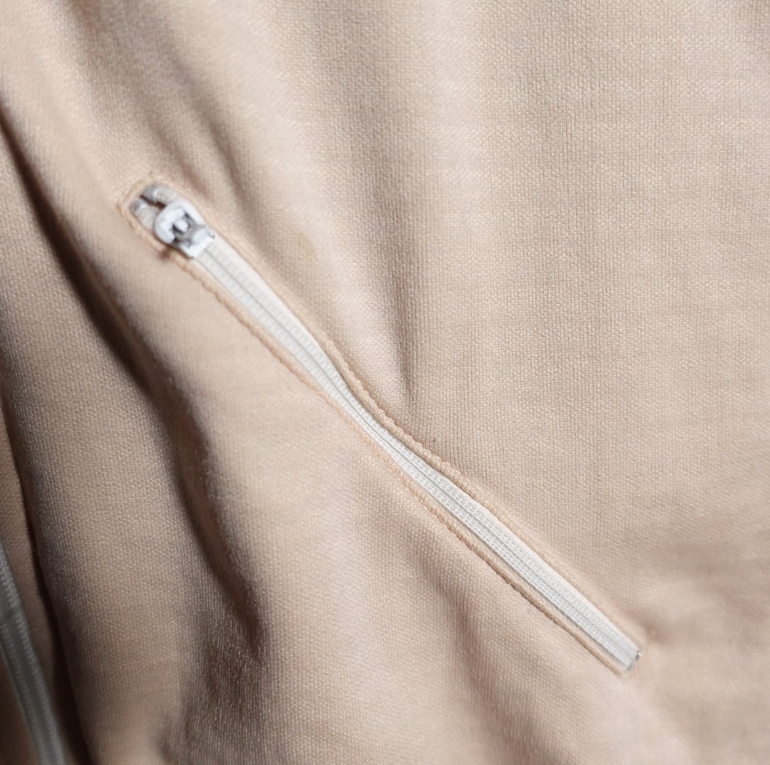 トラックジャケットの中でも特に人気の高いベージュをベースに両袖にブラウン、ブルー、ベージュのニット生地をあしらったデザイン。