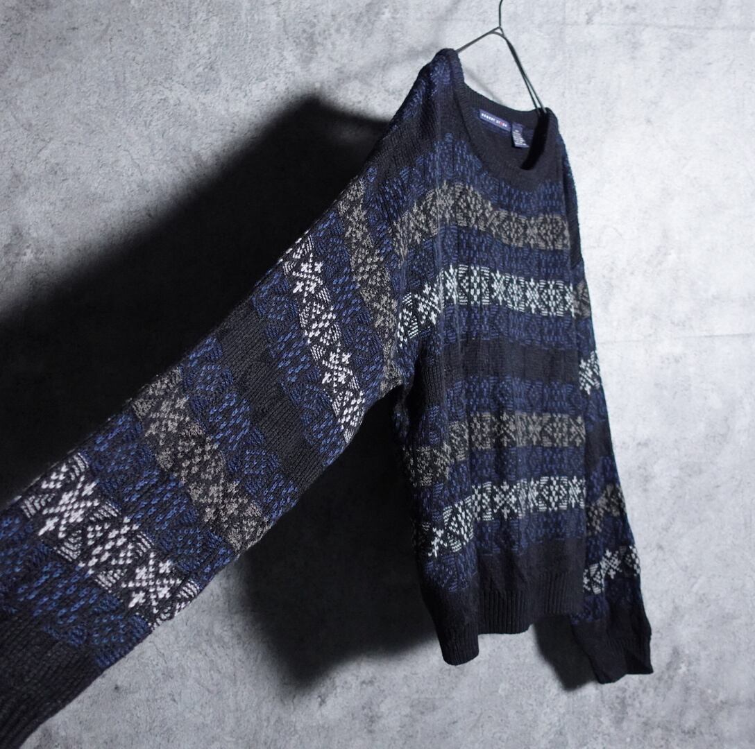 カラーごとの幾何学模様をボーダー状にあしらったデザイン。