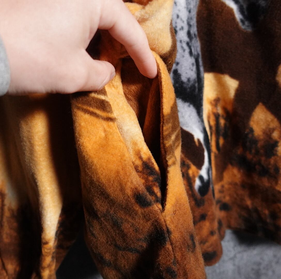 素材はポリエステル100%のフリース生地で保温性に優れており今の季節にぴったりの生地感です。