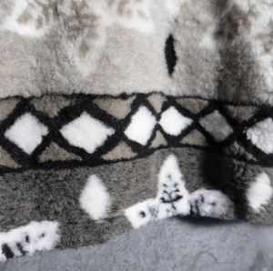 ベージュとグレーをベースに、大判のノルディック柄を全面ににあしらった冬にぴったりなデザイン。