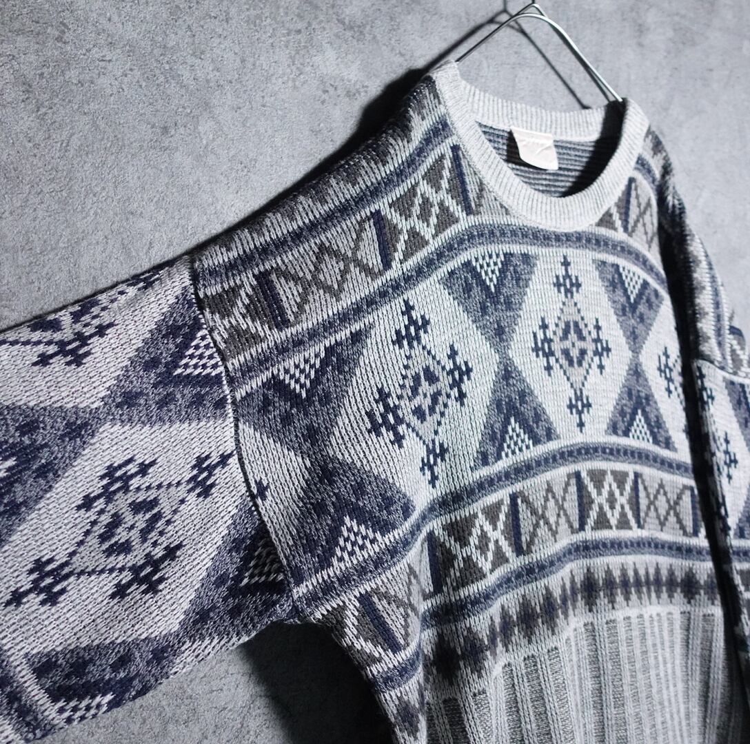 グレーの抽象柄デザインニットが入荷です。