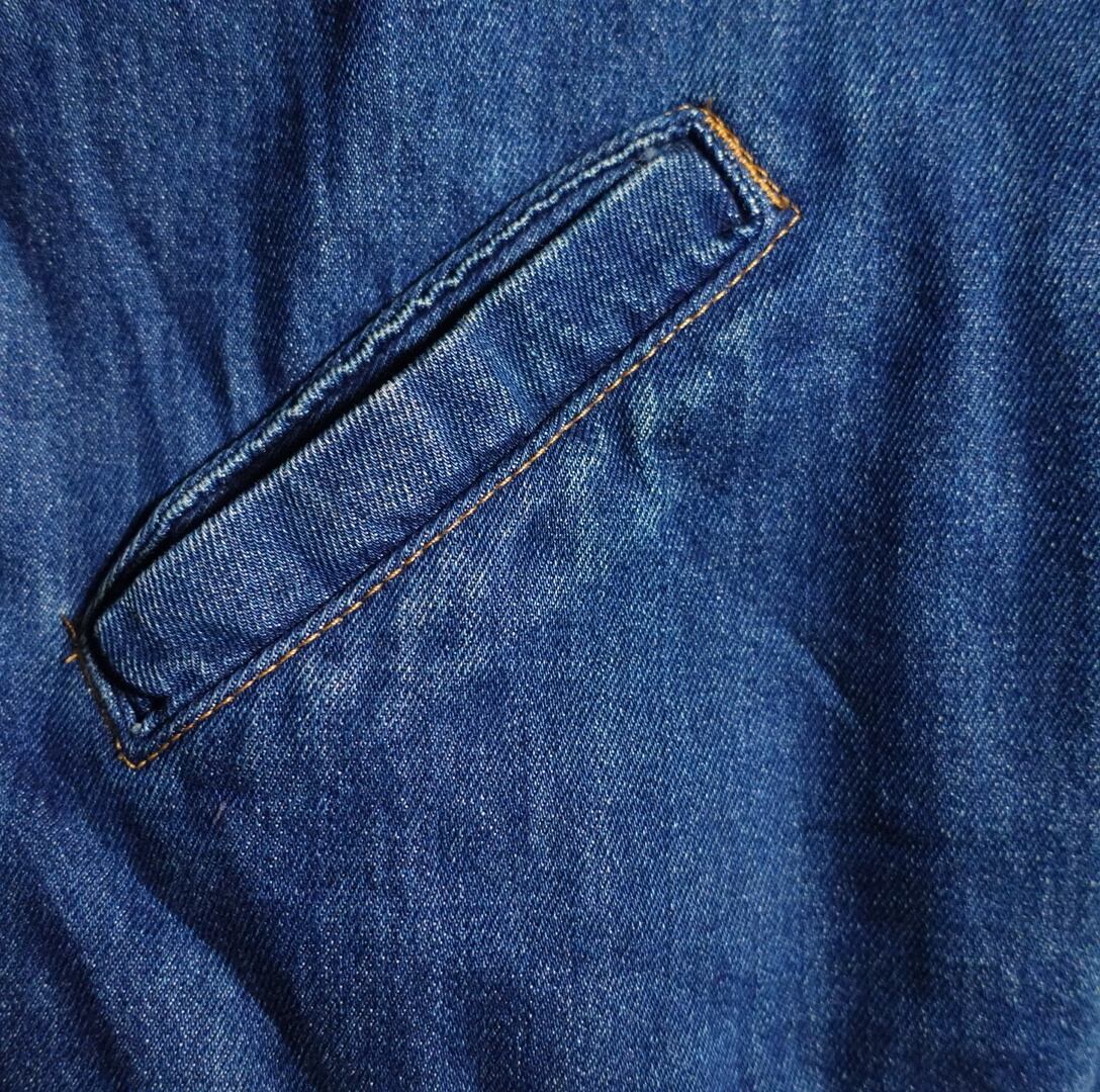 素材はコットン100%のデニム生地でハリのある丈夫な生地感です。