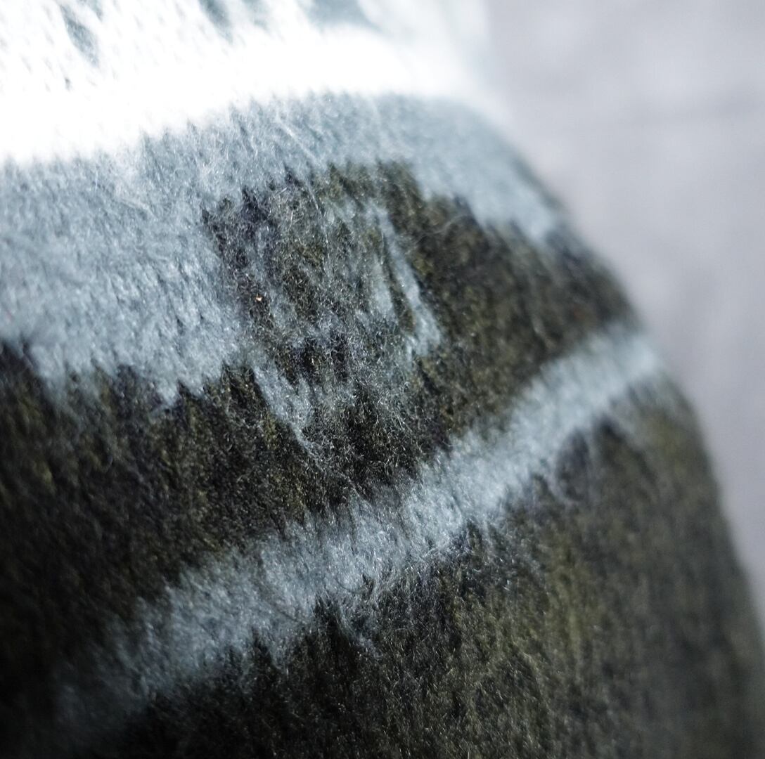 毛足が長くふんわりとしたジャギーニットで、デザインとも相まってヴィンテージらしい独特な雰囲気のある仕上がりとなっています。