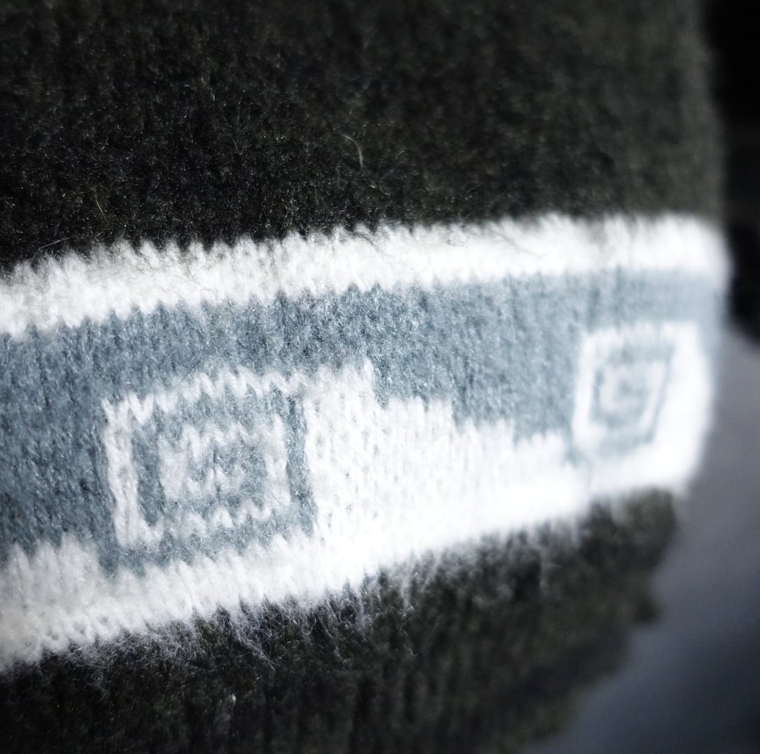 深い独特な色味のモスグリーンをベースにホワイト、グレーのコントラストの効いたマルチカラーリング。
