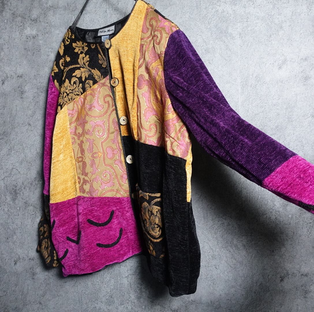 Patchwork Design Velor & Gobelins Collarless Jacket