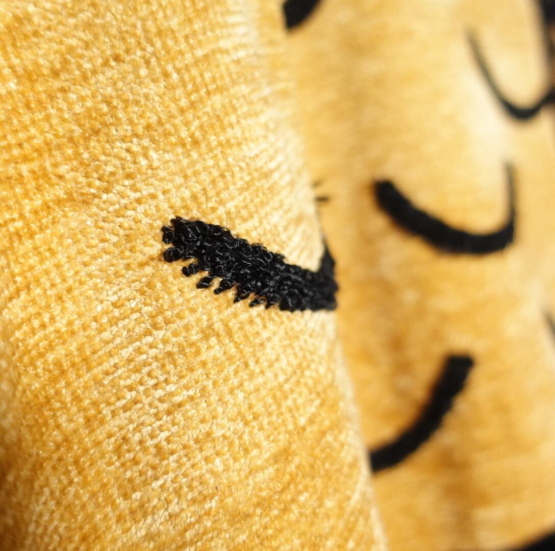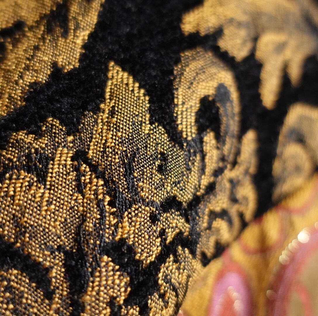 それぞれのカラーのベロア生地とゴブラン生地をパッチワーク状に構築された凝ったスペシャルなデザイン。