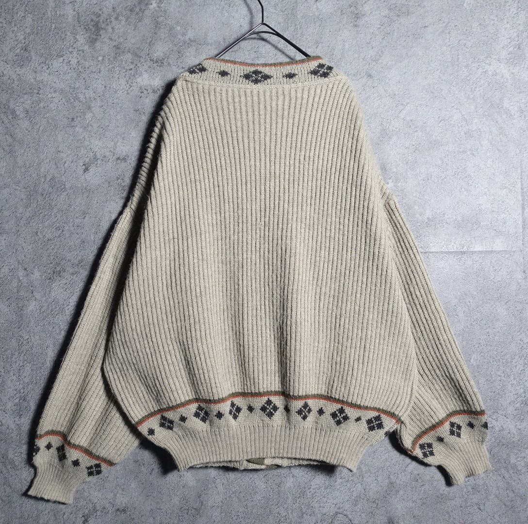 淡いカーキをベースに中央、裾、袖に幾何学模様とグリーンとオレンジのラインをあしらった洒落たカラーリングとデザイン。