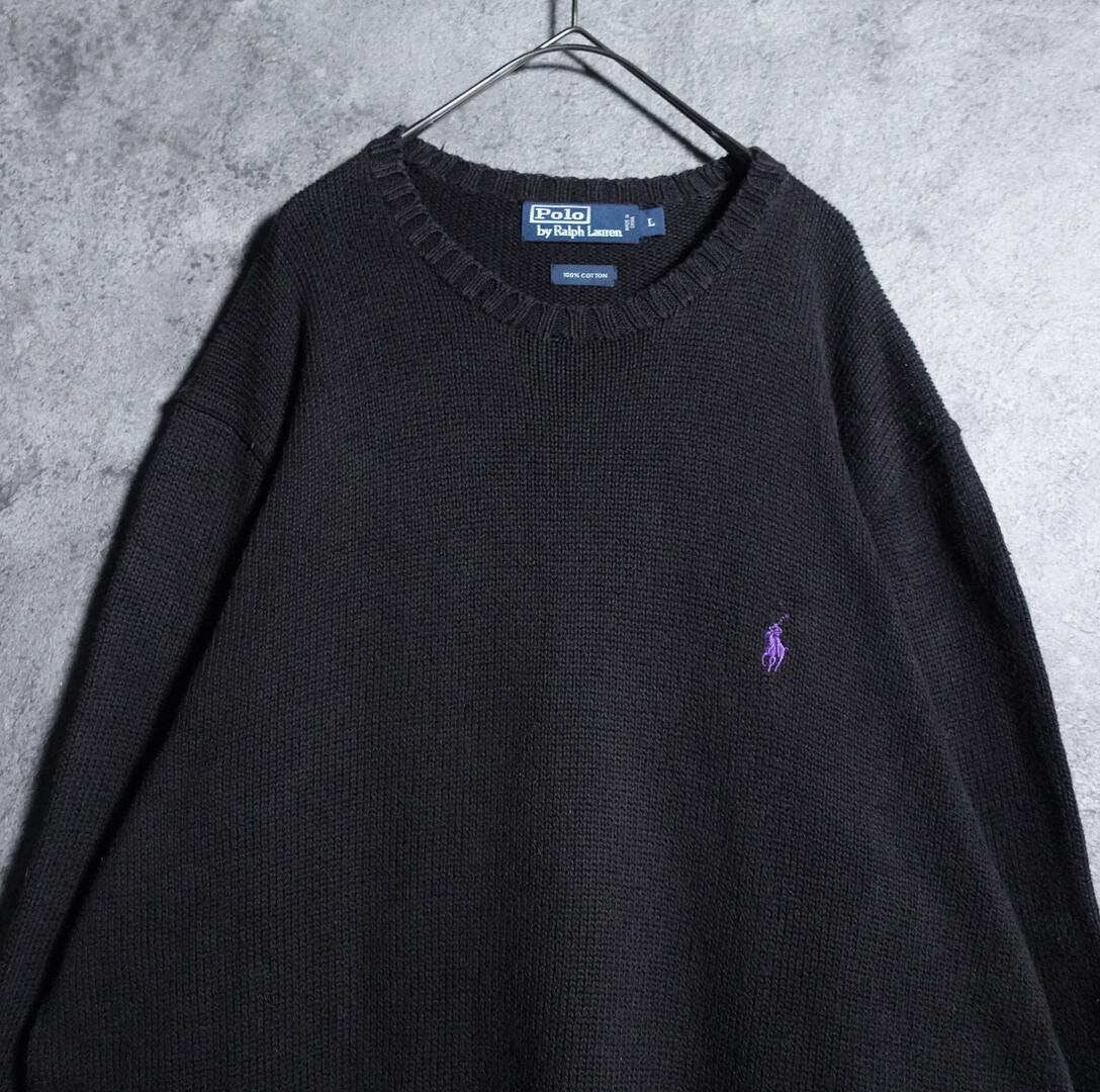 90年代のPolo Ralph Laurenよりブラックのワンポイントロゴデザインコットンニットが入荷です。