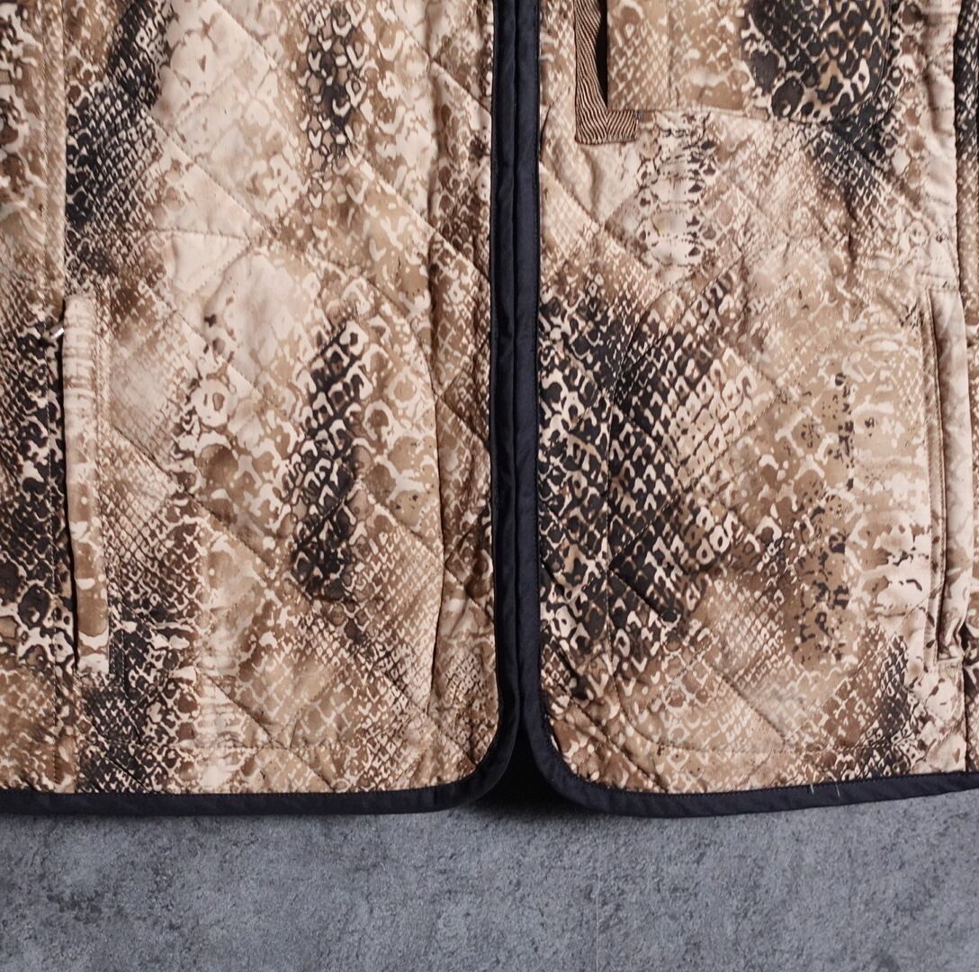 素材はポリエステル、ナイロンの中綿入りのキルティング仕様で、保温性、防寒性があり今の季節にぴったりです。