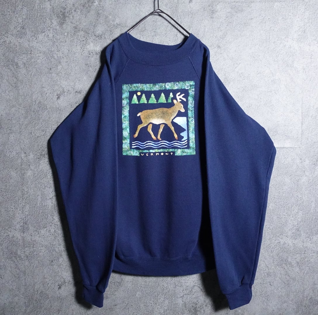 90年代アメリカ製のHanesよりネイビーのアニマルトナカイプリントスウェットが入荷です。