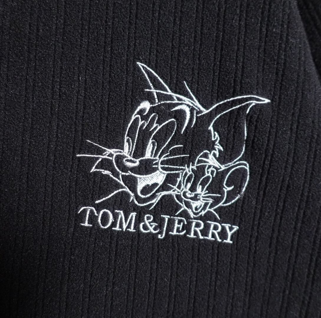 ブラックをベースに、前面は左胸にトムとジェリーと両袖にアルファベット刺繍を施したデザイン。