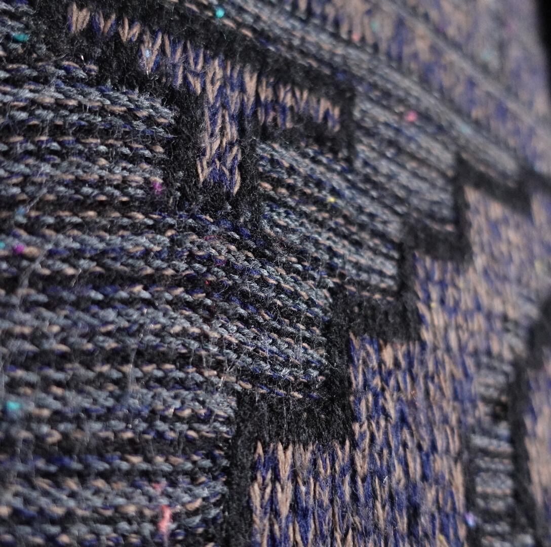 所々にイエロー、ブルー、グリーン、ピンクなどの編み構えており、洒落ていていいですね。