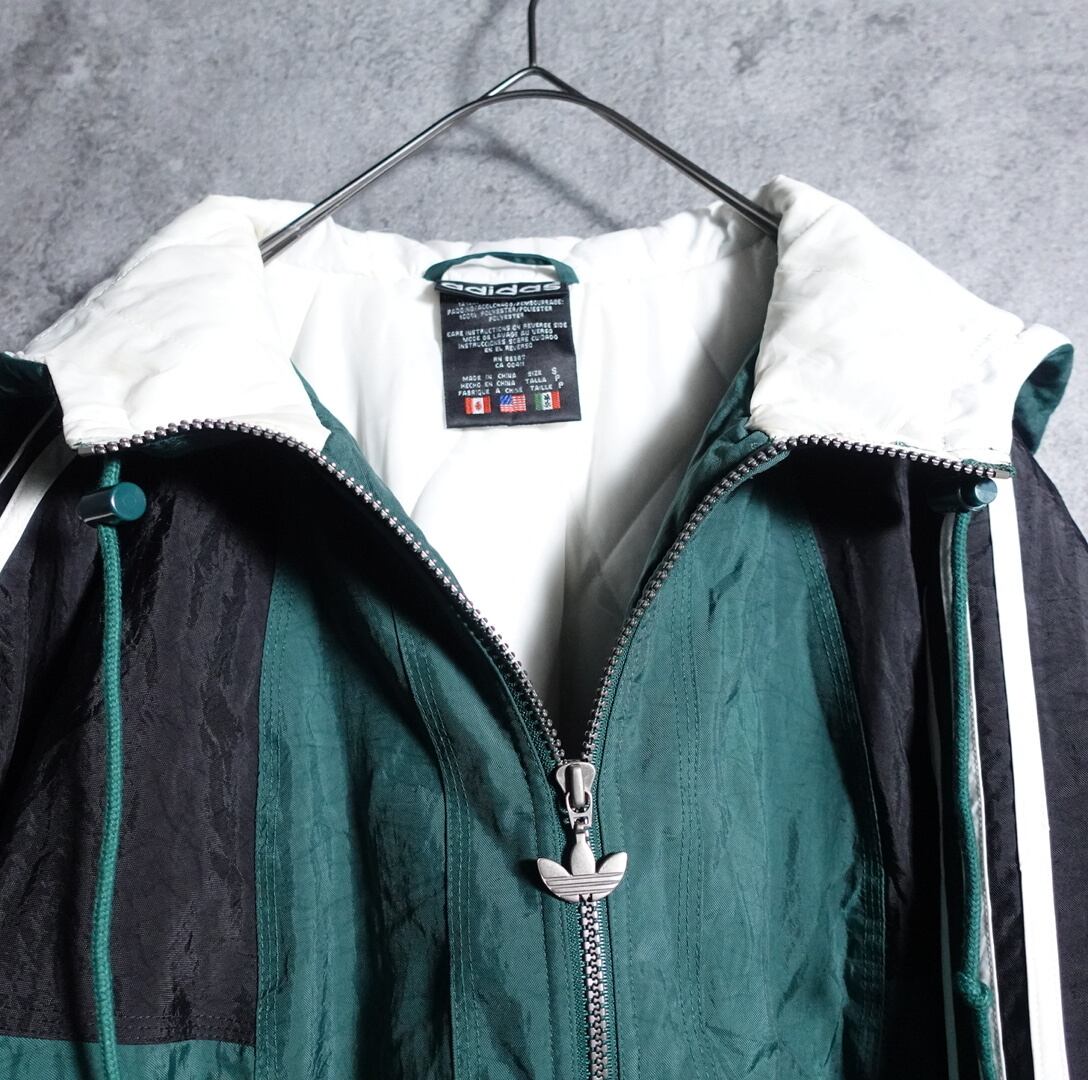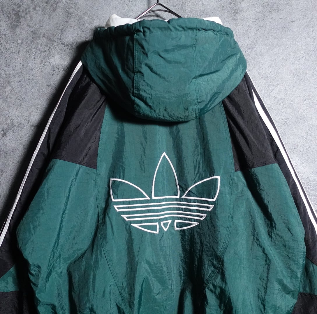 90s "adidas" logo embroidery design half zip batting nylon jacket