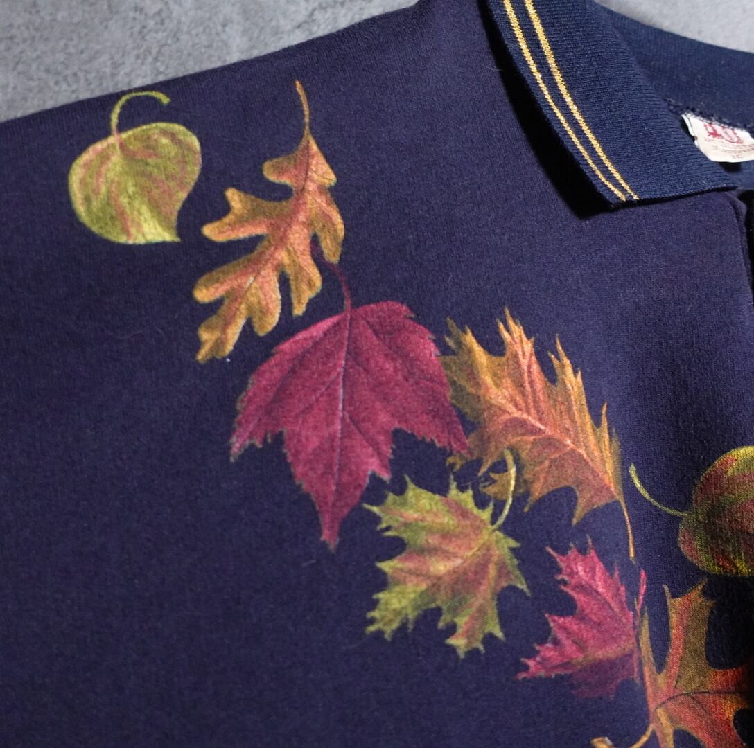 90s “ART UNLIMITED” autumn leaves printed polo sweat