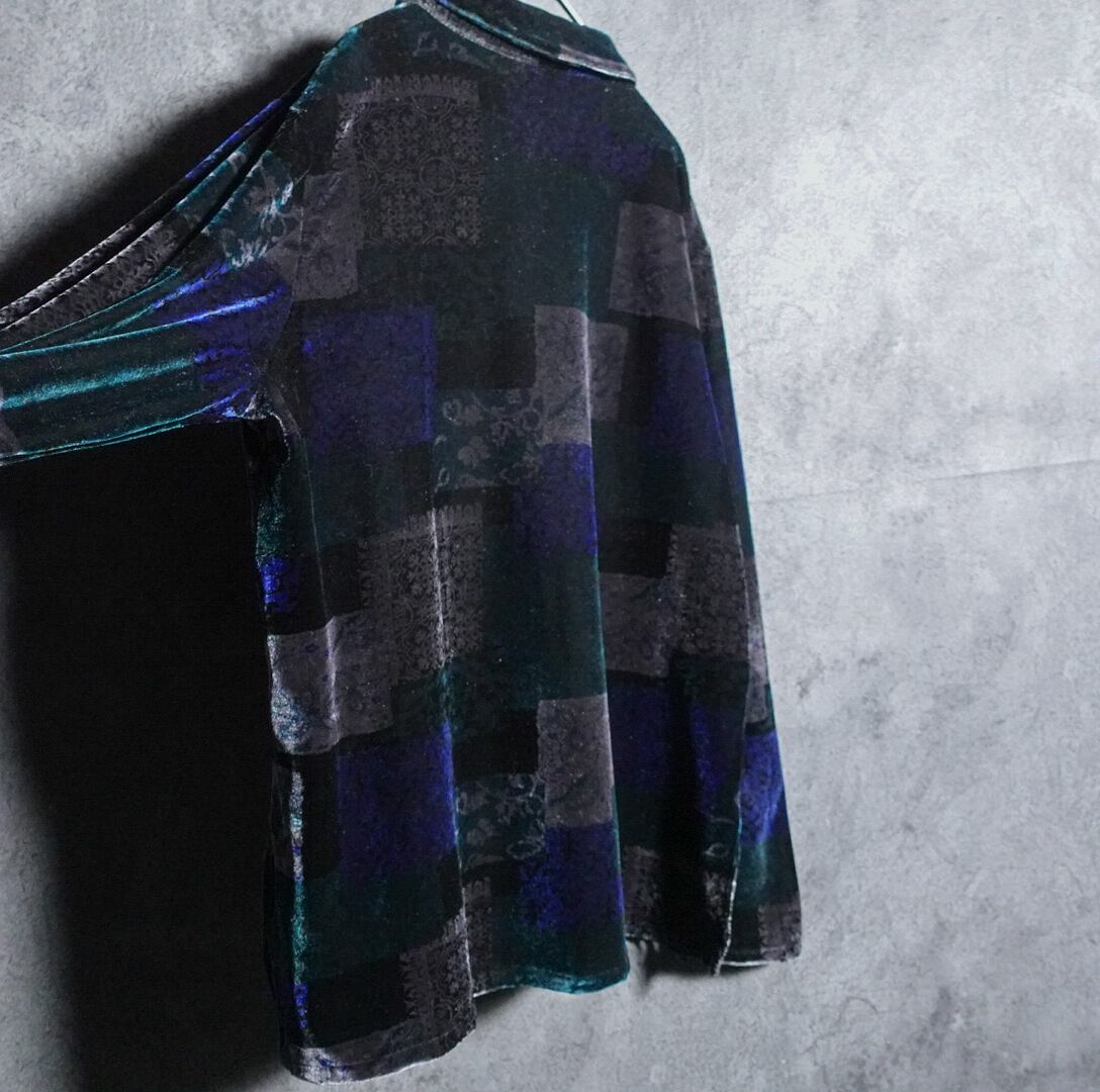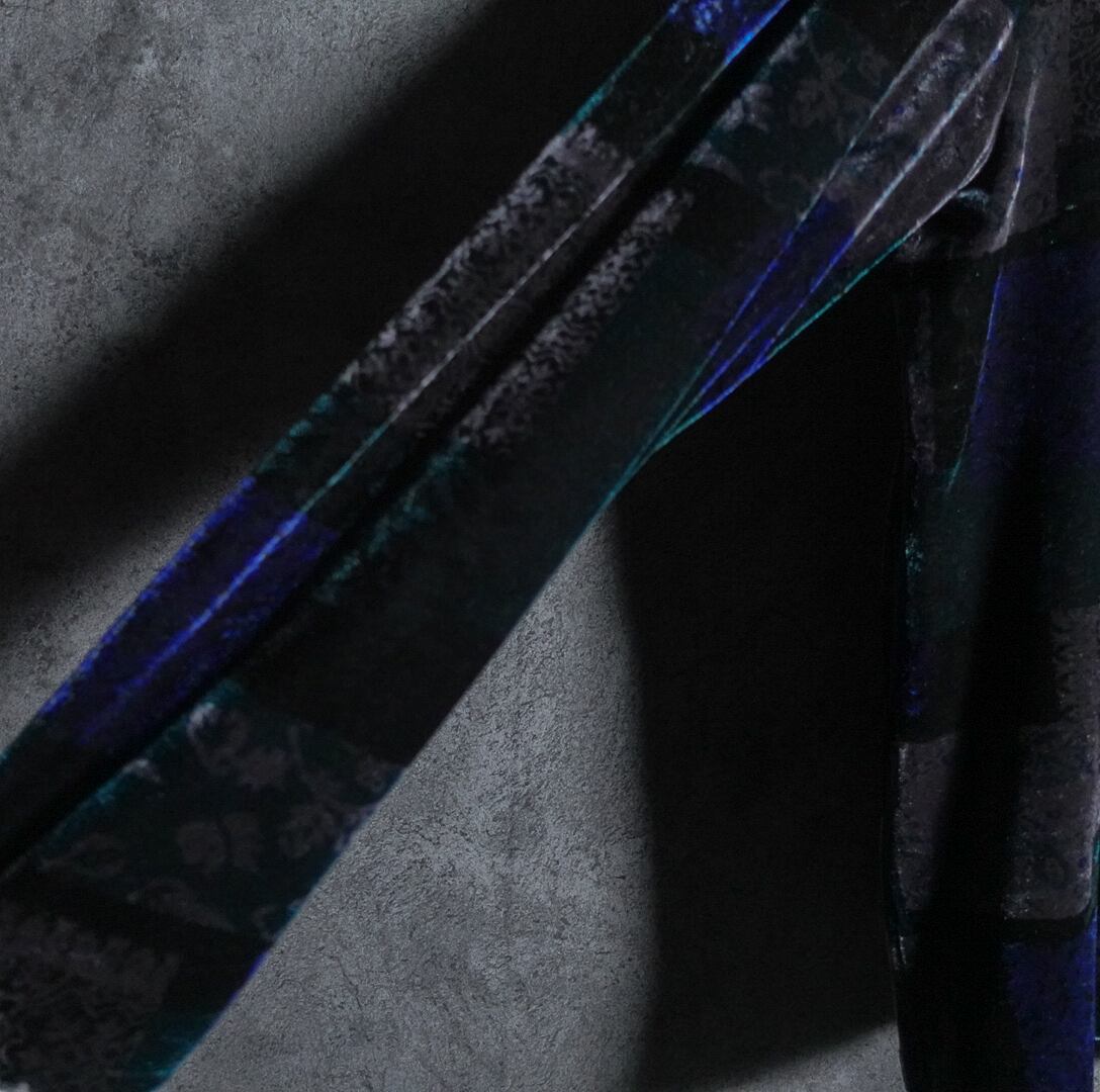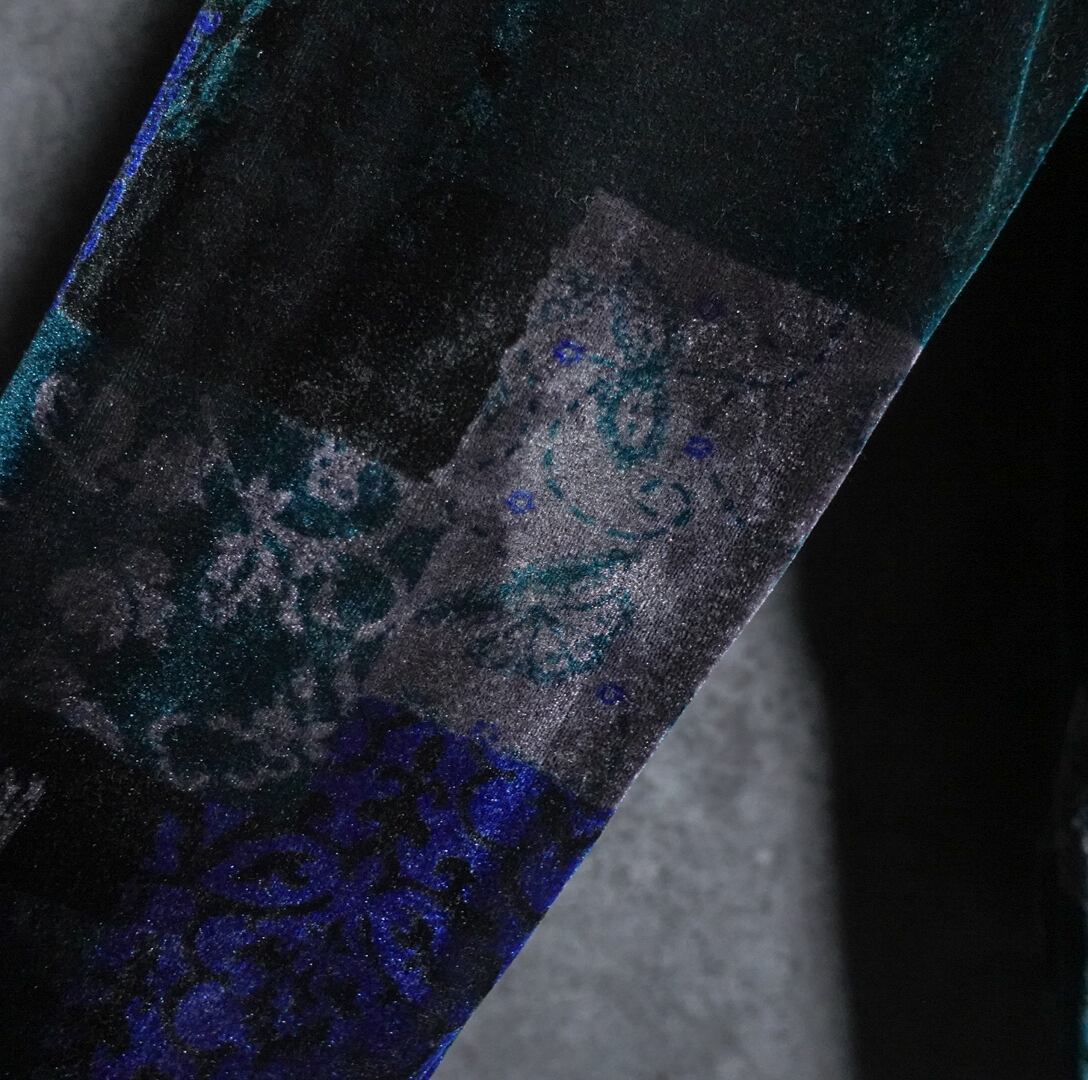 表地は恐らくコットン、ポリエステルのベロア生地となっており、上品な光沢感がありラグジュアリーな雰囲気を醸し出しています。