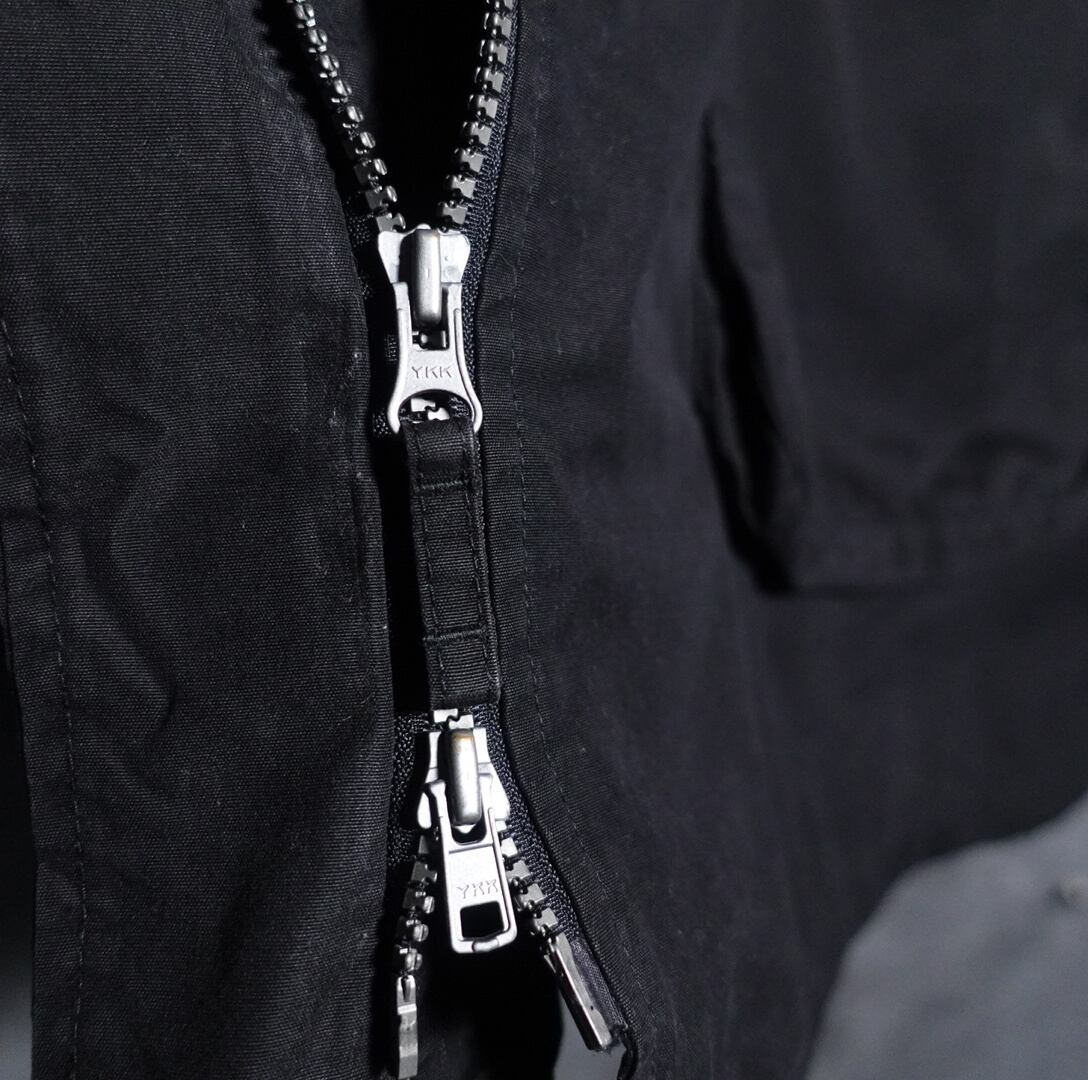 ブラックをベースに前面にマチ付きの大きなポケットとスラッシュポケットを施したデザイン。