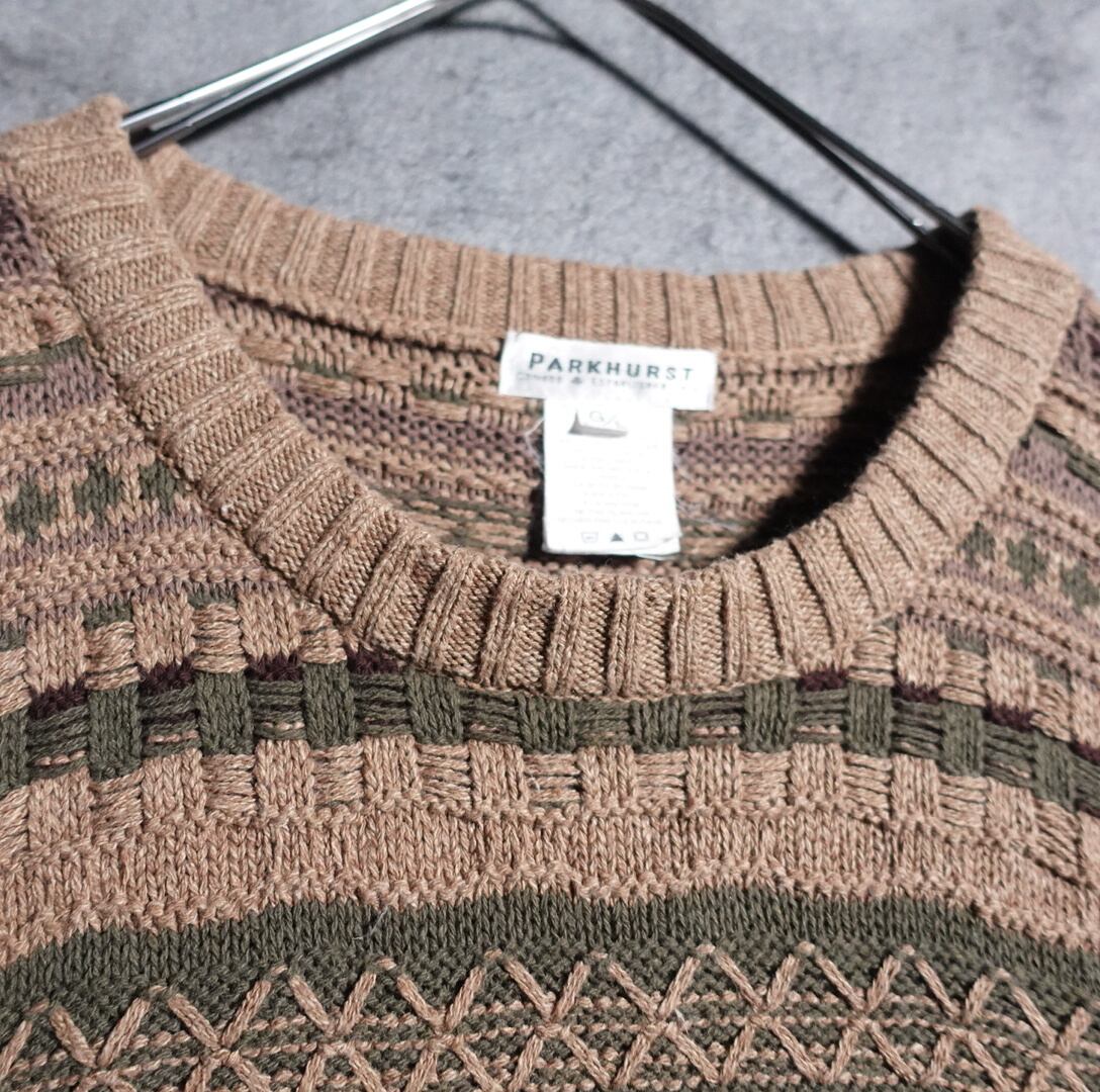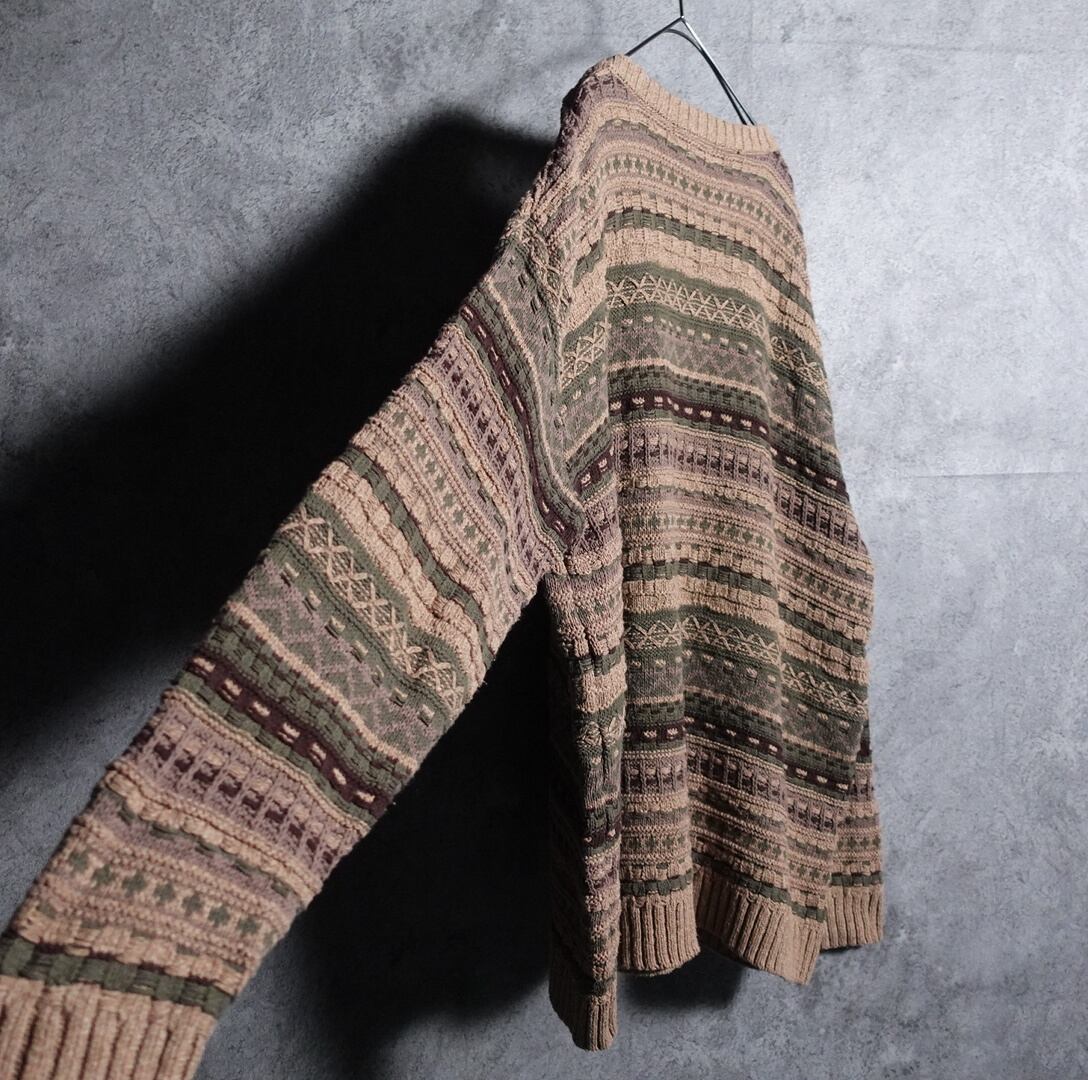様々な立体感のあるニッティングをボーダー状に全面にあしらった凝った洒落たデザイン。