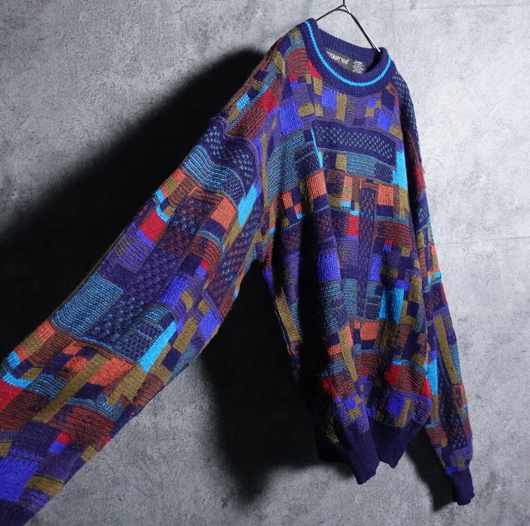 マルチカラーの幾何学模様デザインニットが入荷です。