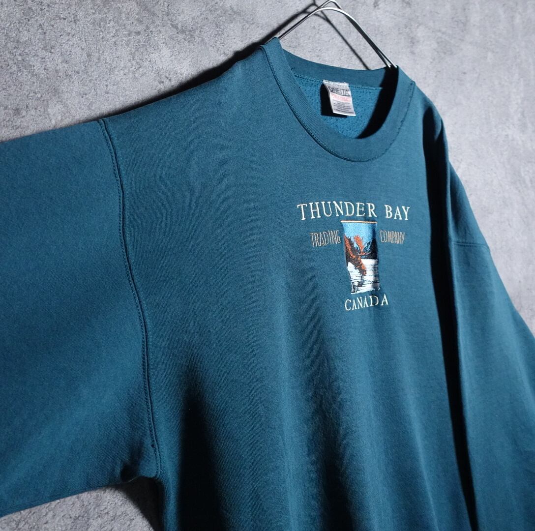 90s “ONEITA” Green animal reindeer embroidery sweat