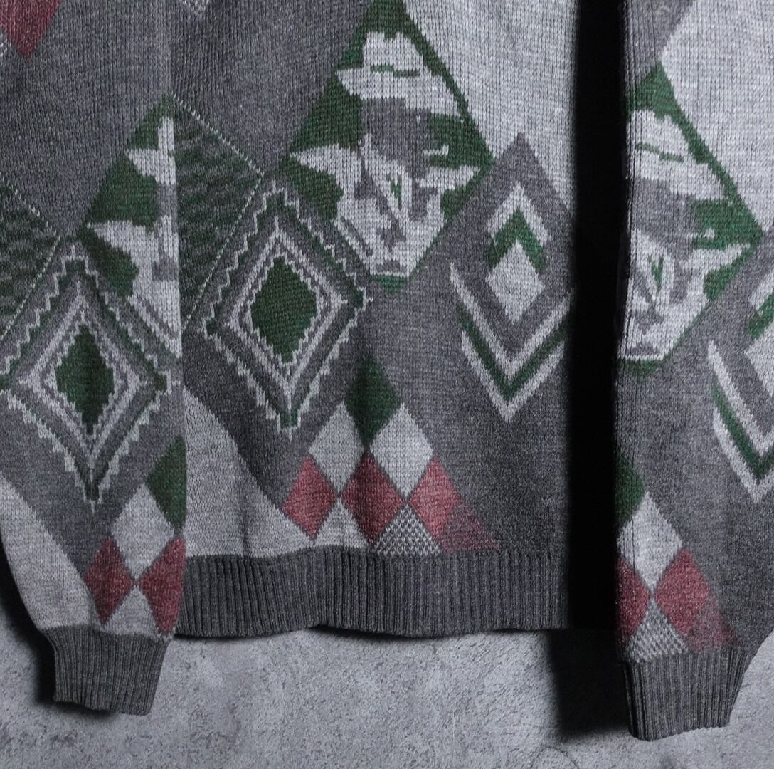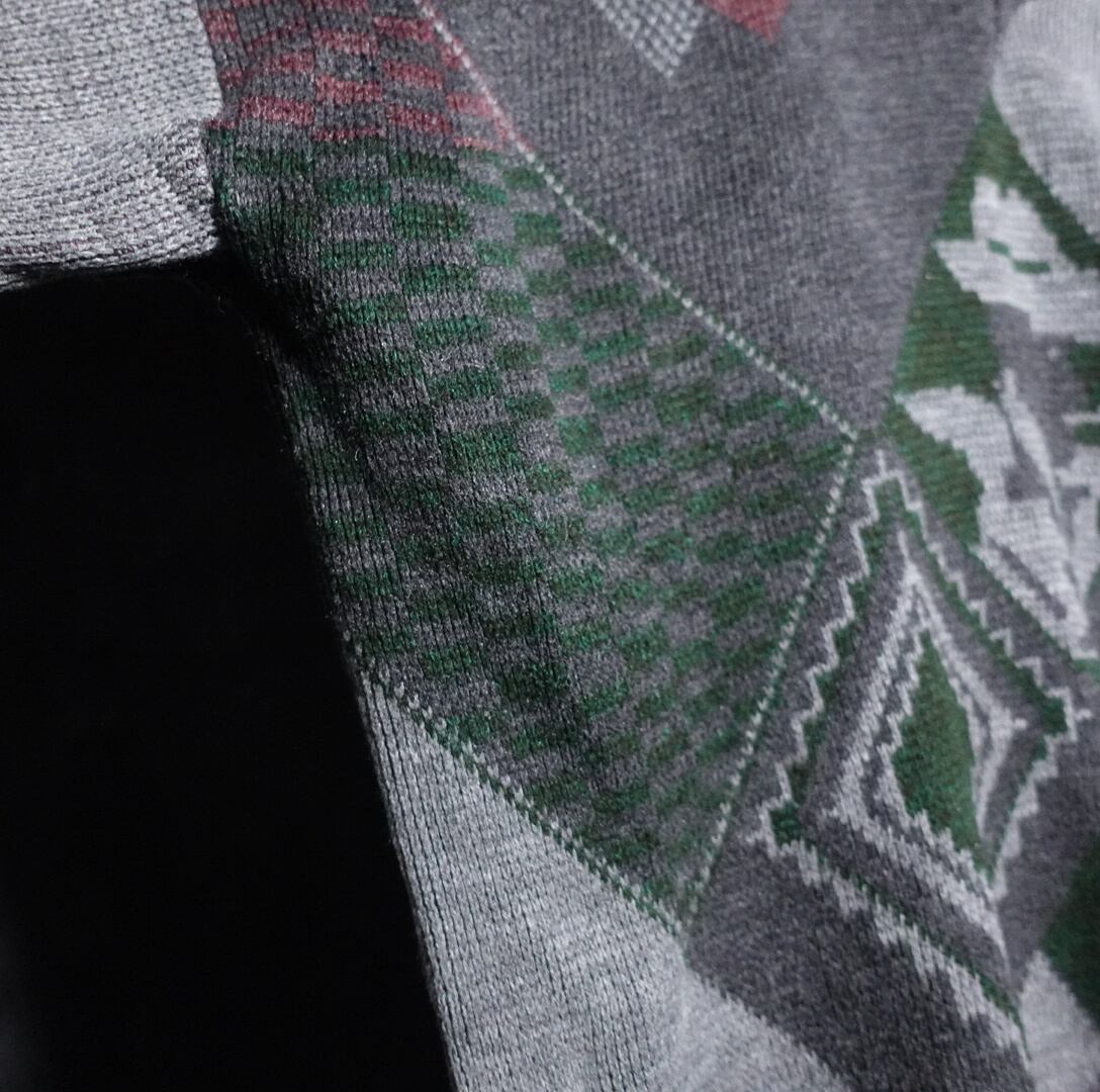 マルチカラーの幾何学模様デザインVネックニットが入荷です。
