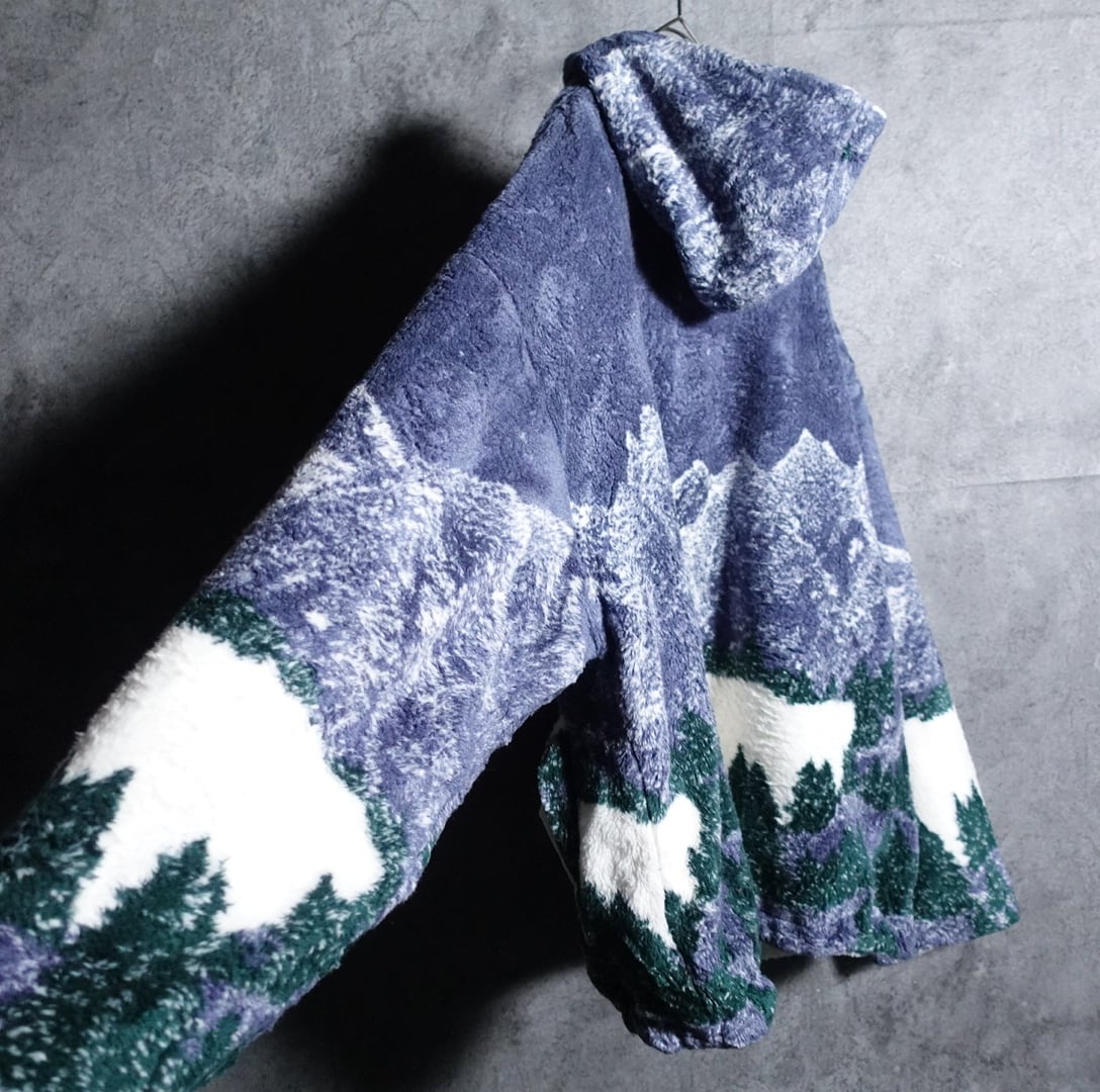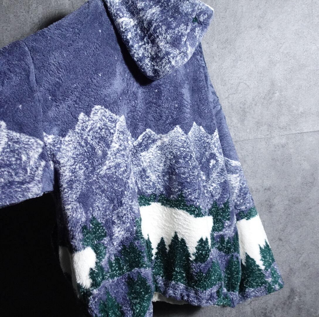大きくガバッと被れるフード付きで暖かいのは勿論、柄があしらわれておりデザインとしても◎
