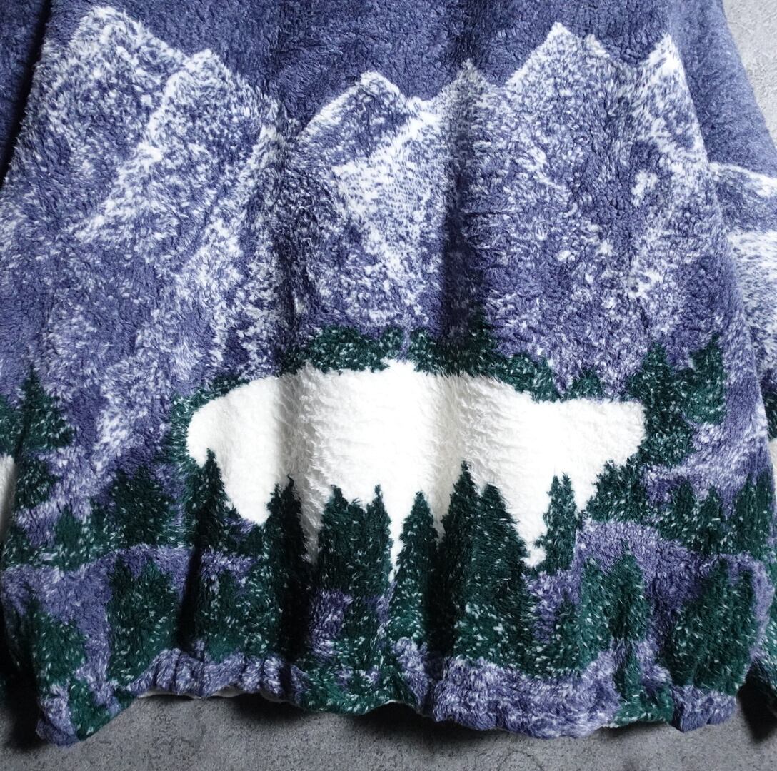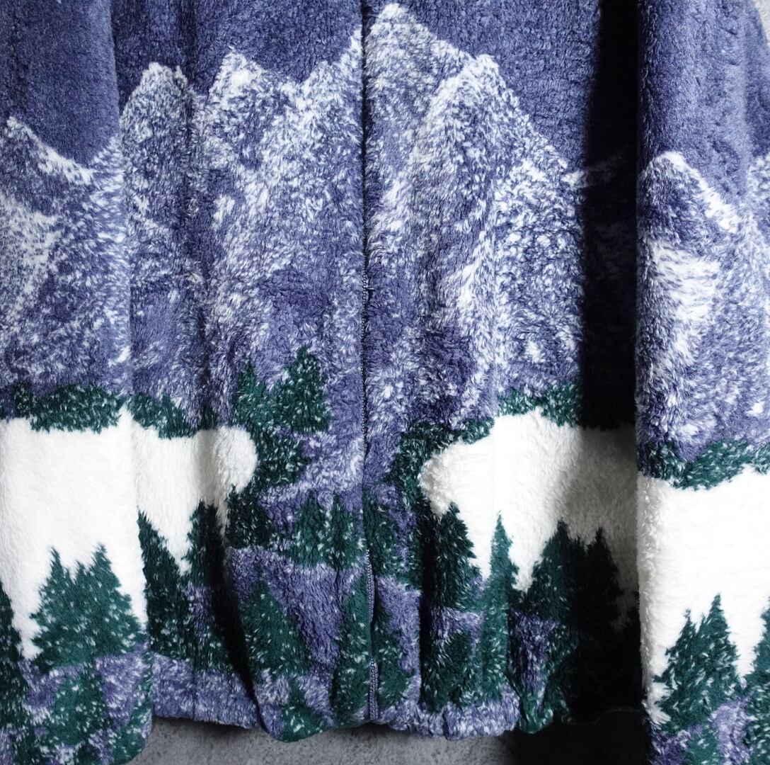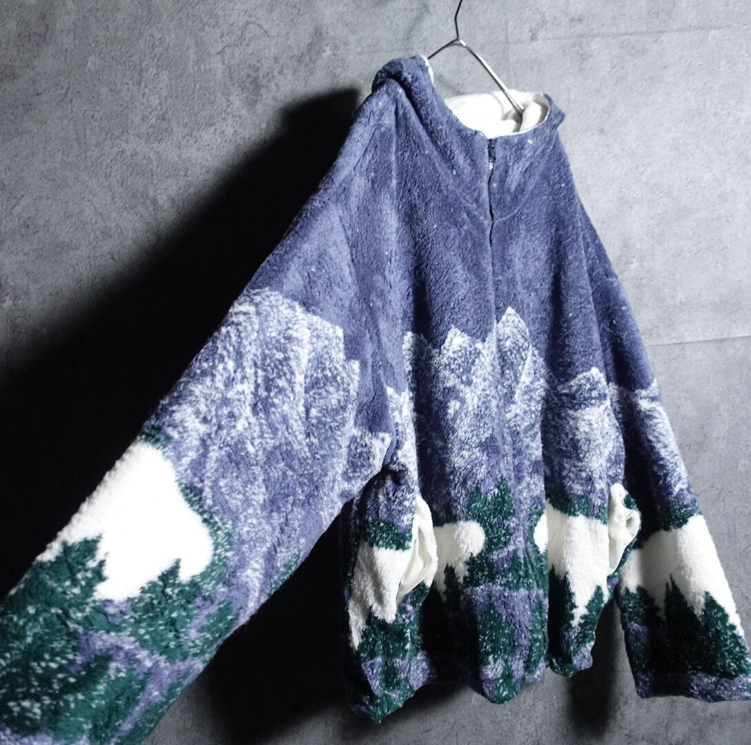 ブルーをベースに山脈と森に雪が積もった風景を全面に描いたアーティスティックなデザイン。