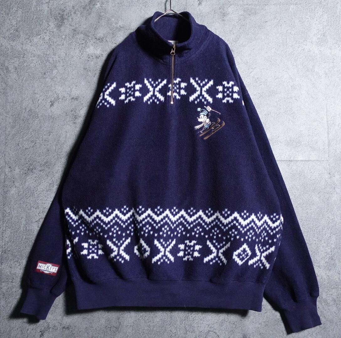 90年代のDisneyよりミッキー刺繍デザインのハーフジップフリースジャケットが入荷です。