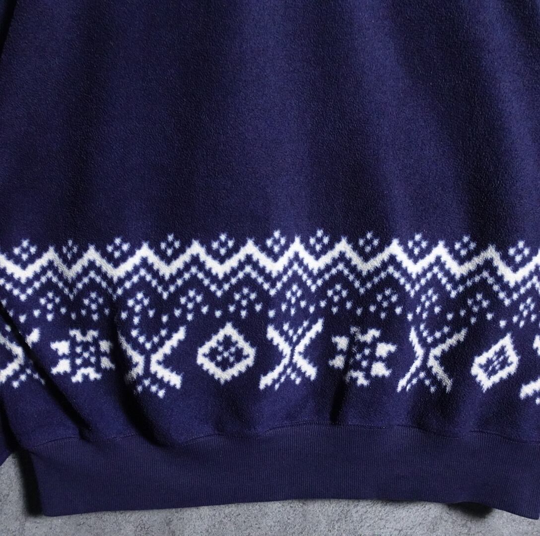 ネイビーをベースに上下にノルディック柄をあしらいさらに左胸にスキーの格好をしたミッキーを刺繍で施した冬らしさのあるデザイン。