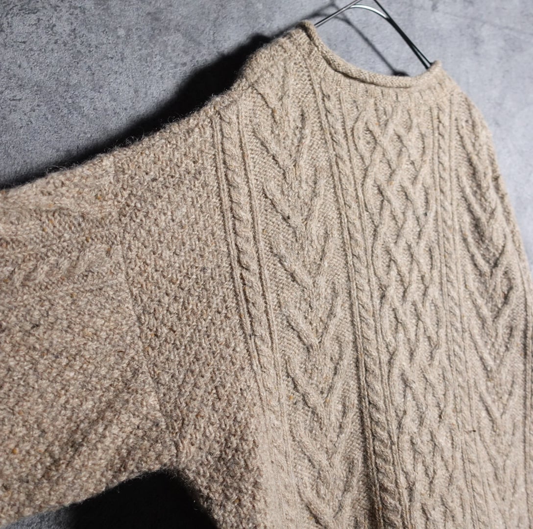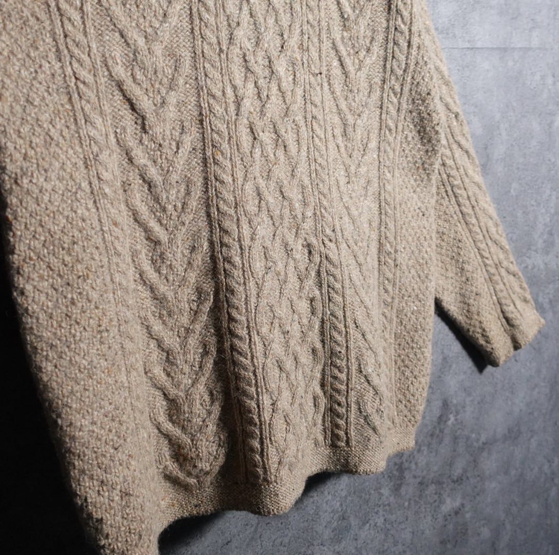 “DONEGAL” Beige Roll Neck Vintage Fisherman Knit