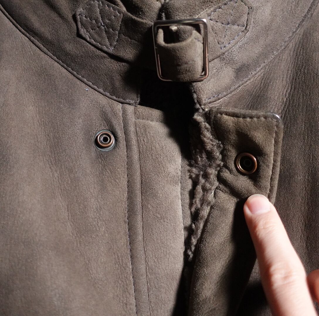 Khaki belt boa mouton jacket