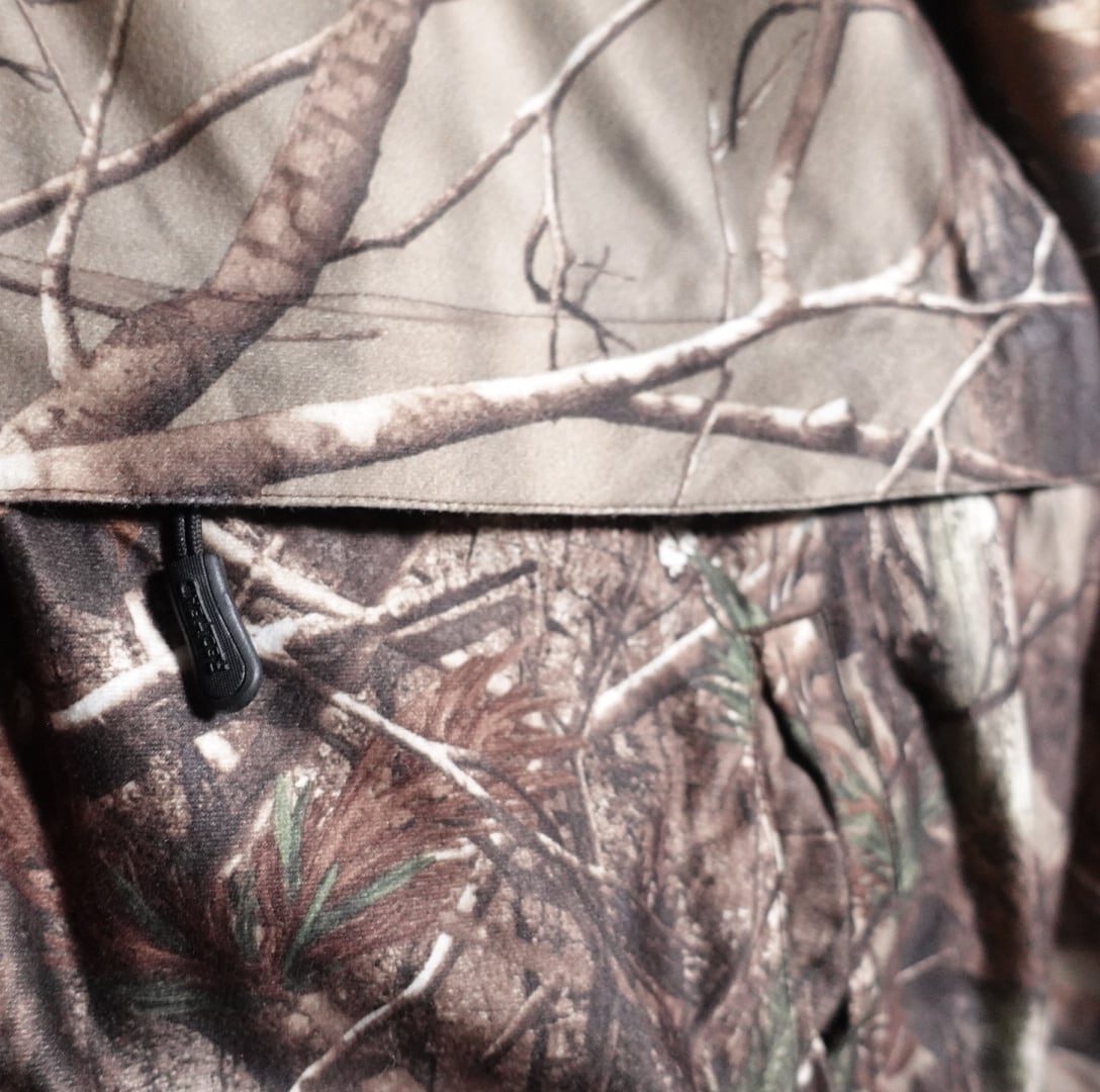 全面にリアルな枯れた木々を全面にあしらった近年人気の高いリアルツリーカモ柄のデザイン。