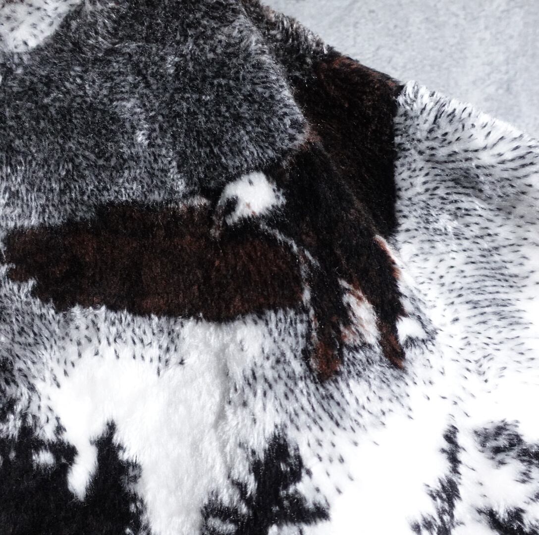 素材はポリエステルの毛足がやや長めのフリース生地で保温性に優れており寒い冬にぴったりの生地感です。