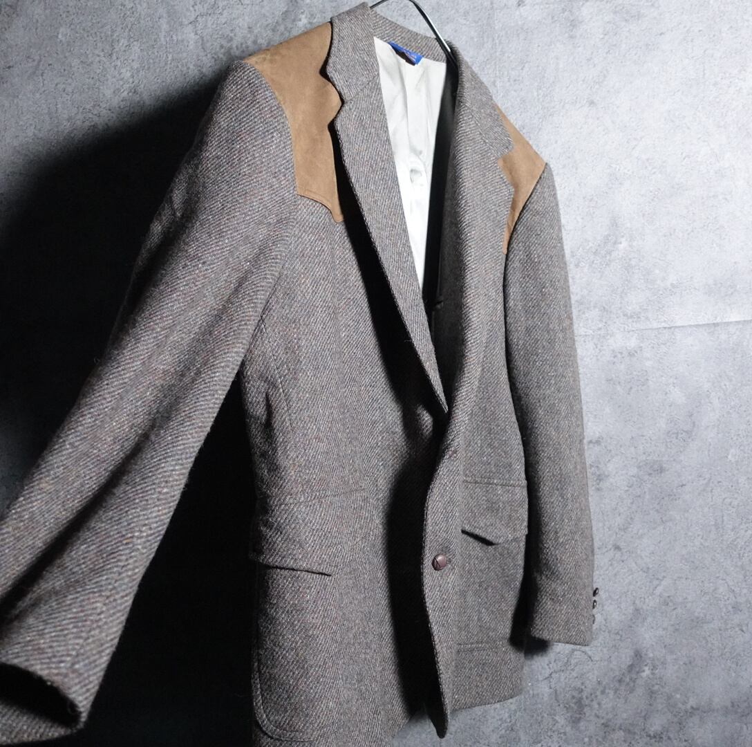 ツイードのテーラードジャケットでウエスタンヨーク×エルボーパッチのデザインは中々見かけないかと。