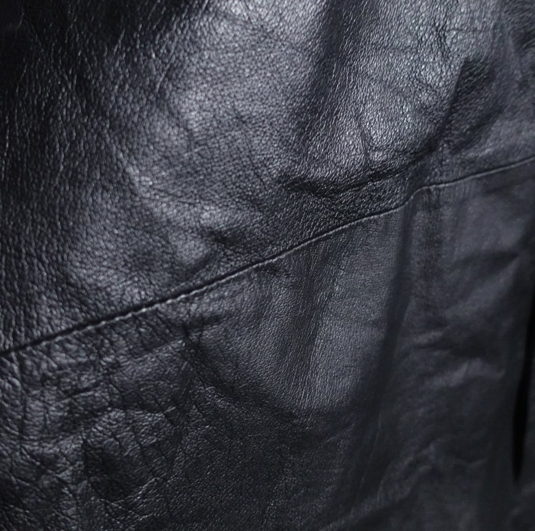 レザーアイテムでは珍しい着丈125cmのマキシ丈で雰囲気が抜群に出る丈感です。