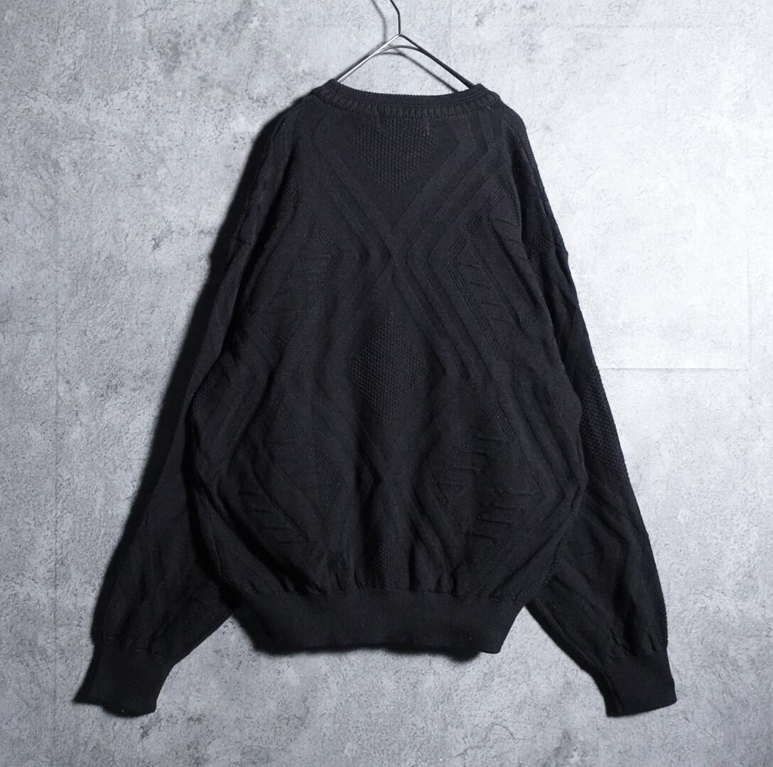 ブラックをベースに立体感のあるニッティングで表現されたダイヤモチーフを全面にあしらったデザイン。
