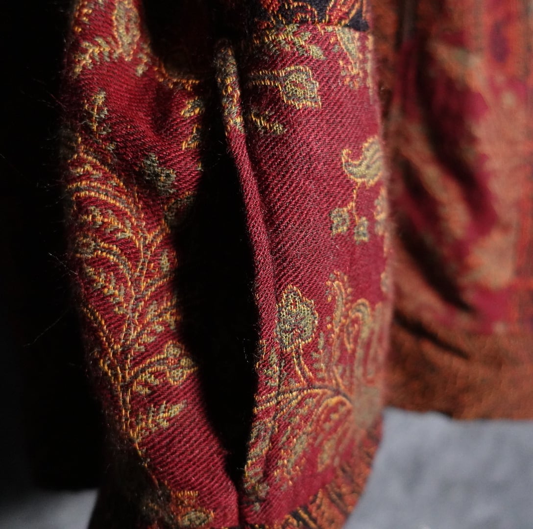 ペイズリー、オリエンタル、ボタニカルをプリントではなく織りで表現し、パッチワーク状に縫い合わせて構築された凝りに凝ったスペシャルなデザイン。