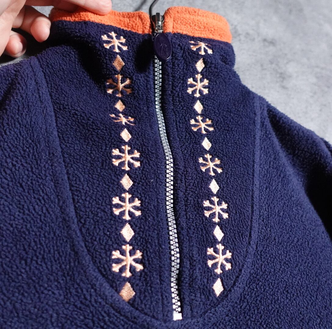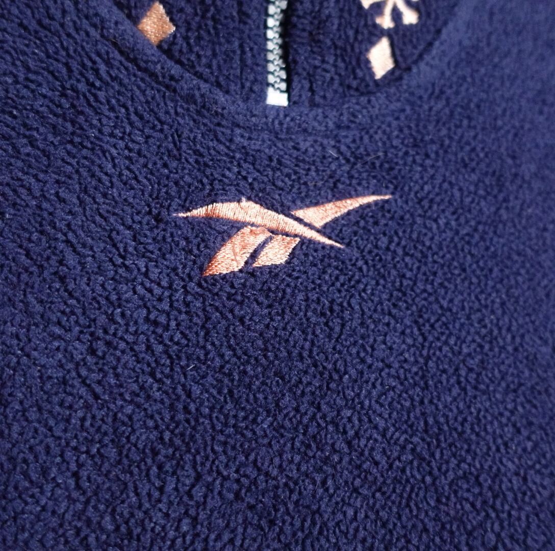 90s "Reebok" navy ice crystal embroidery half-zip fleece jacket