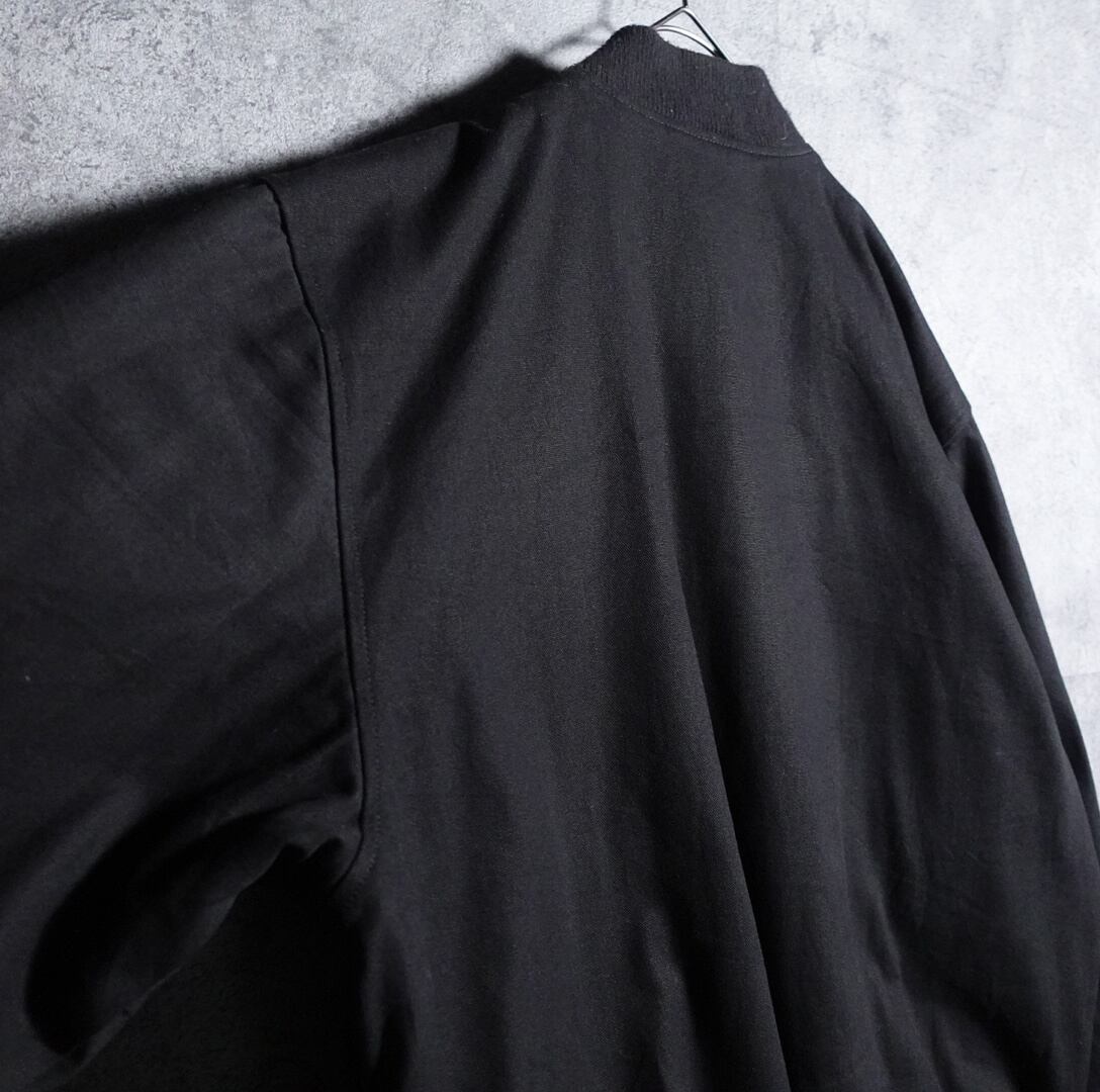 単色のブラックでかつシンプルなデザインなので、インナーやボトムスを選ばず様々なスタイリングにお使いいただける活躍の幅の広い逸品です。