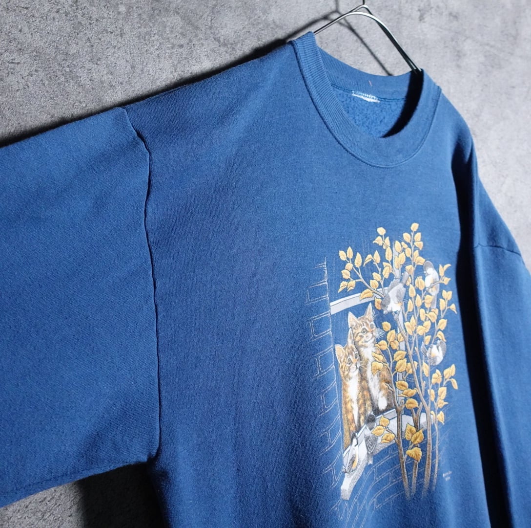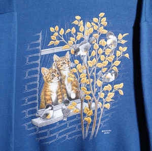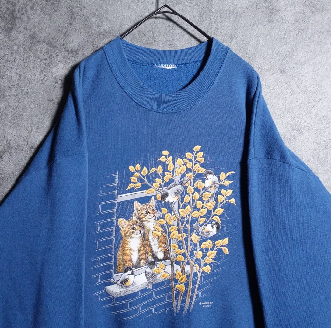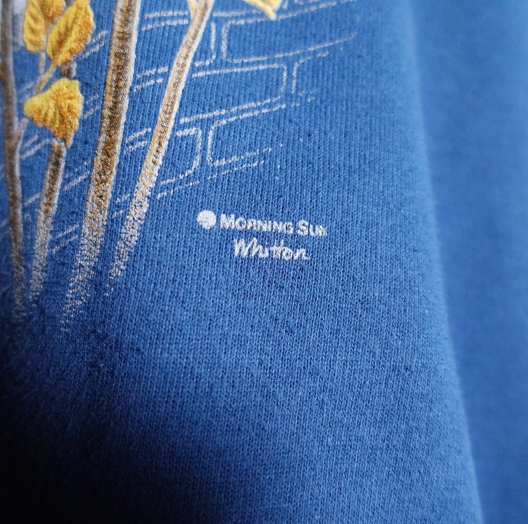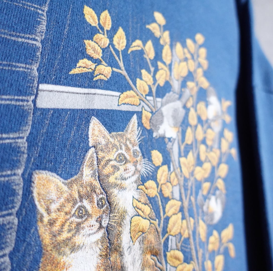 90年代のMORNING SUNよりブルーの猫×鳥デザインスウェットが入荷です。