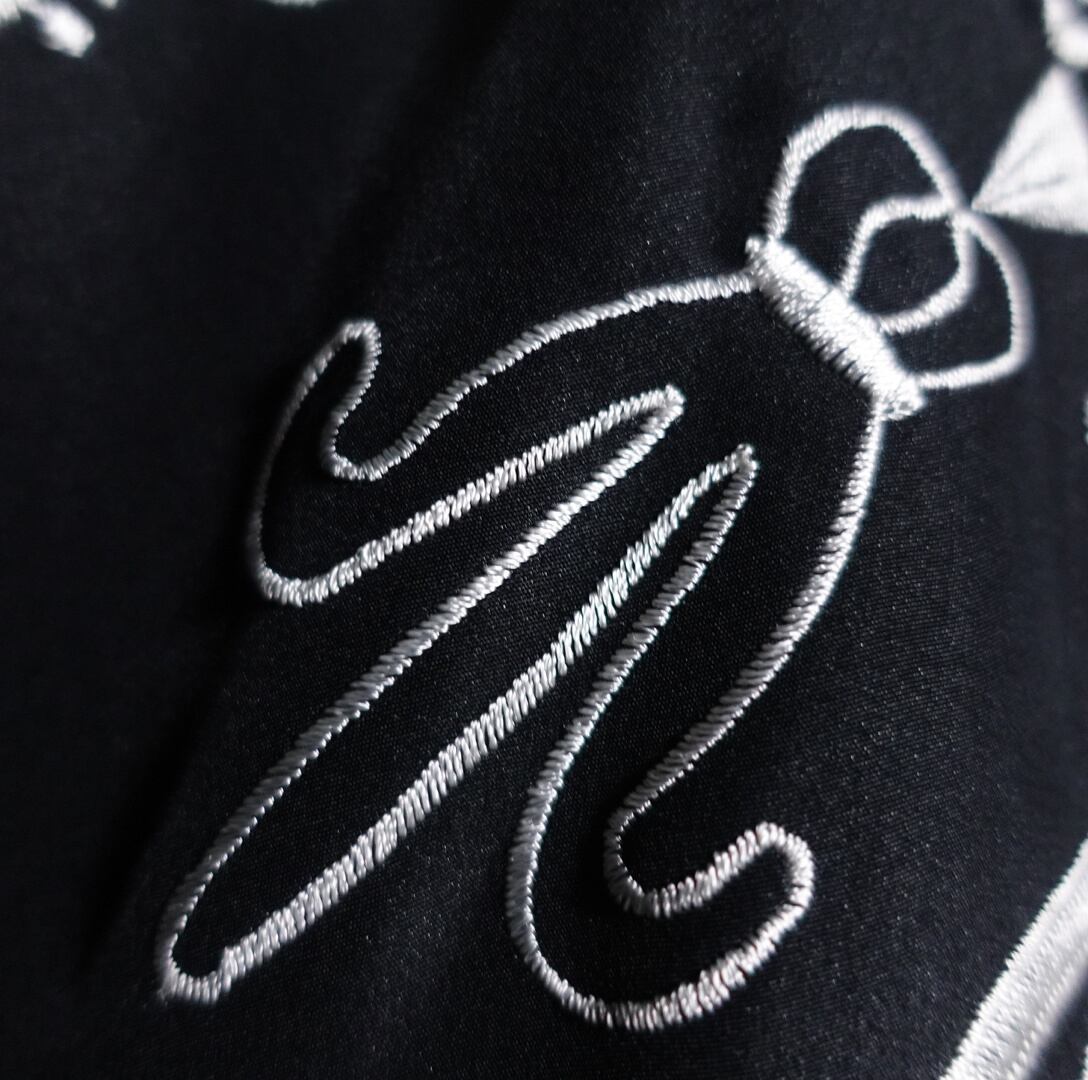 刺繍のカラーが左右切り替わっており、ボタンで隠れるところまで刺繍が施されているなど非常に凝ったつくりとなっています。