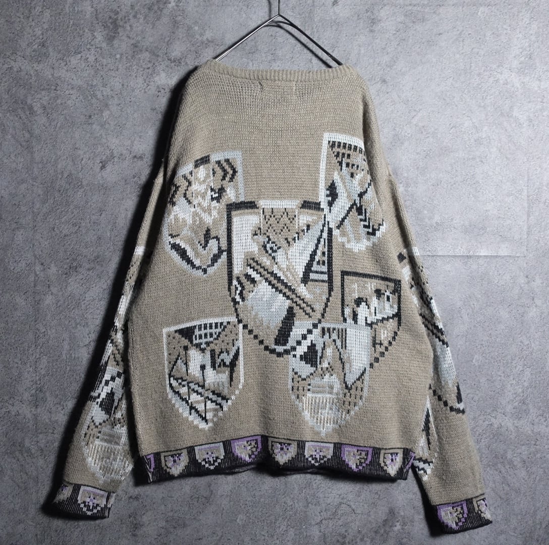 Beige emblem motif design knit