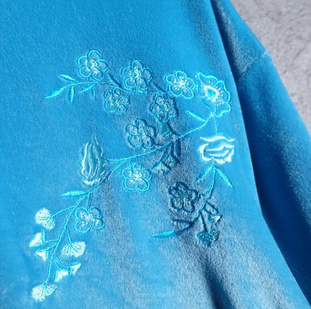 ライトブルーの刺繍デザインベロアジャケットが入荷です。