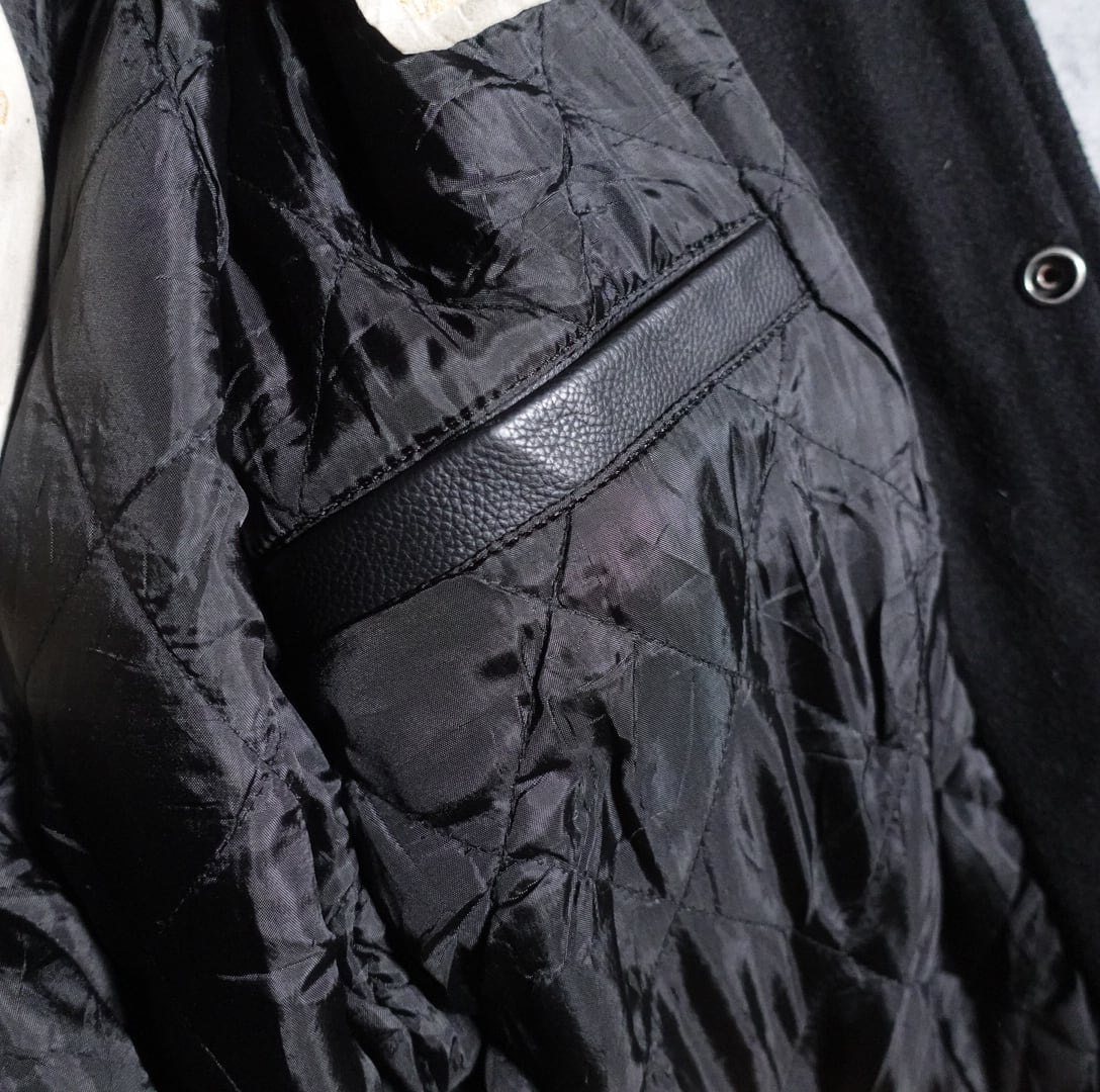 ブラックのメルトンをベースに袖、スラッシュポケットを柔らかくもっちりとした上質なレザーに切り替えた人気の高いボディーのスタジャン。