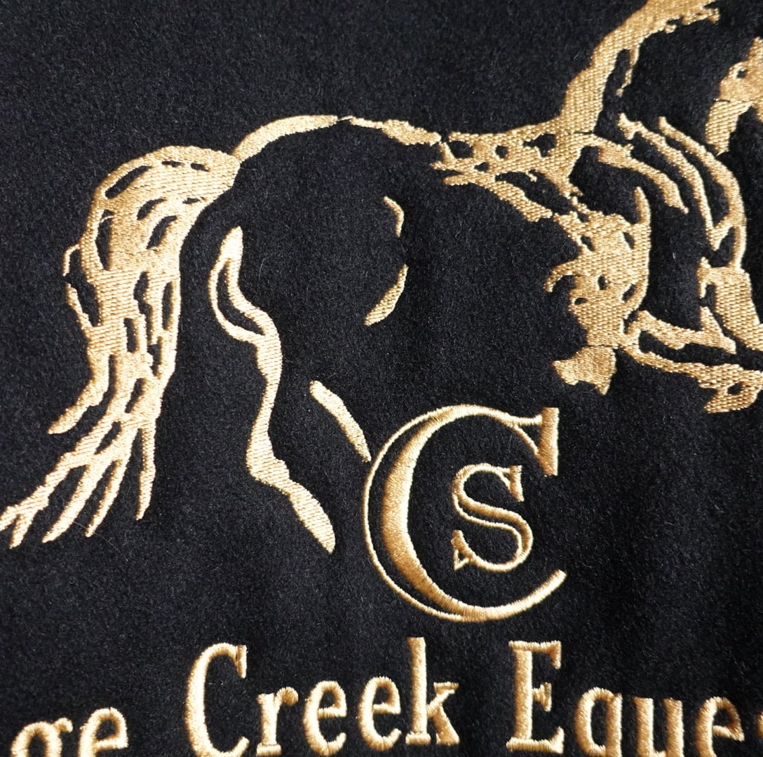 フロントは馬とアルファベットをゴールドの刺繍で施したワンポイントデザイン。