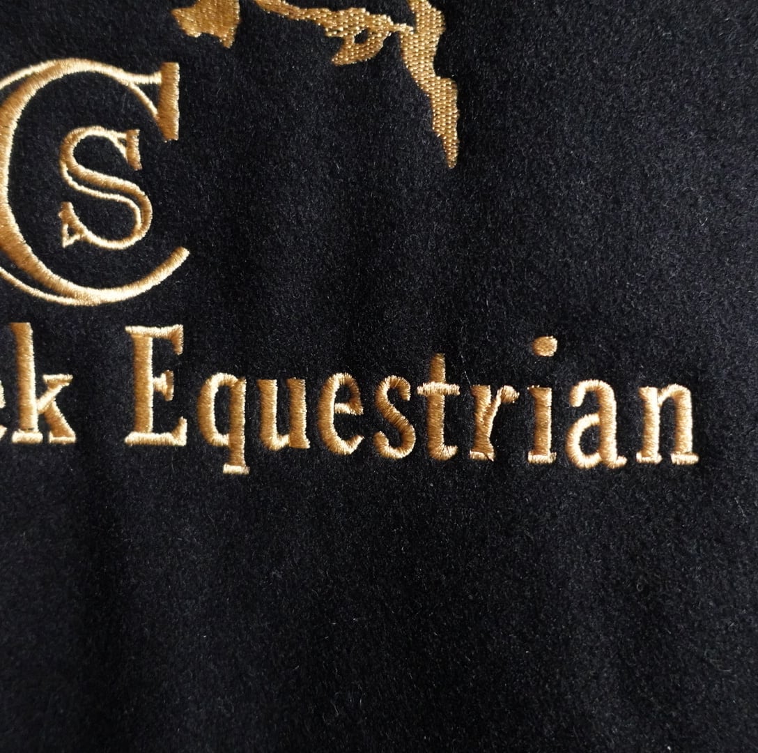 Black Melton x Leather Horse Embroidered Design Stadium Jacket