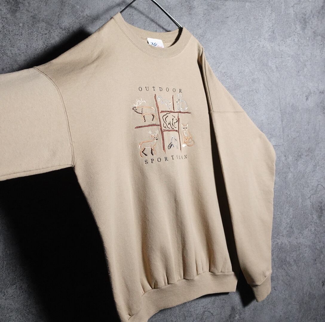 90s Beige animal embroidery design sweat