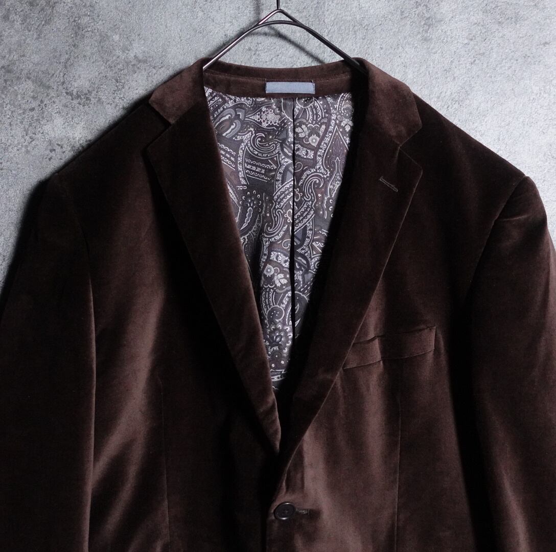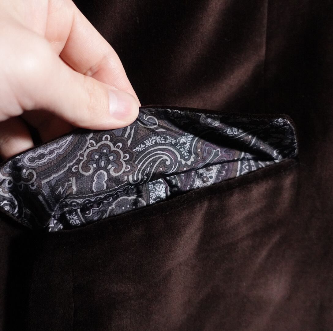 ブラウンのペイズリー柄ベルベットテーラードジャケットが入荷です。