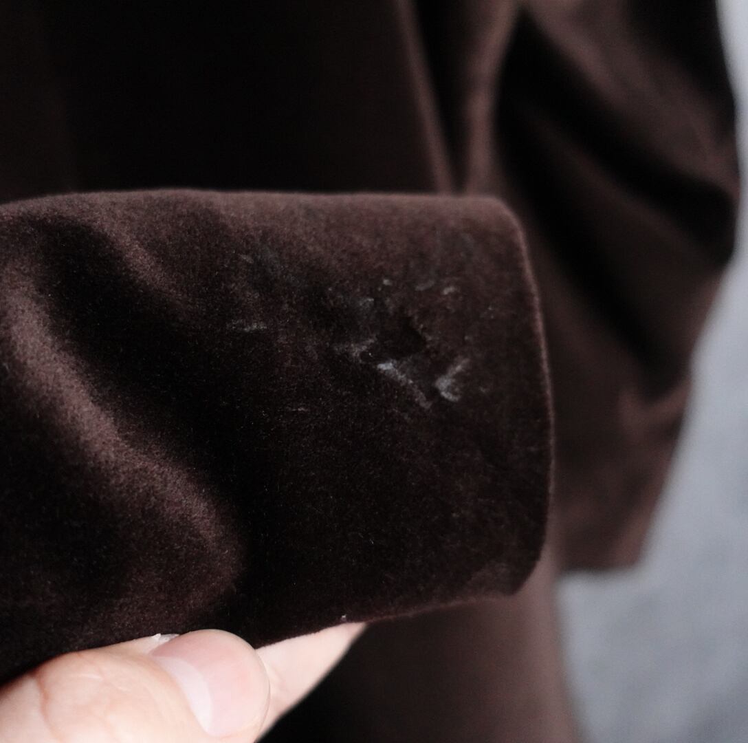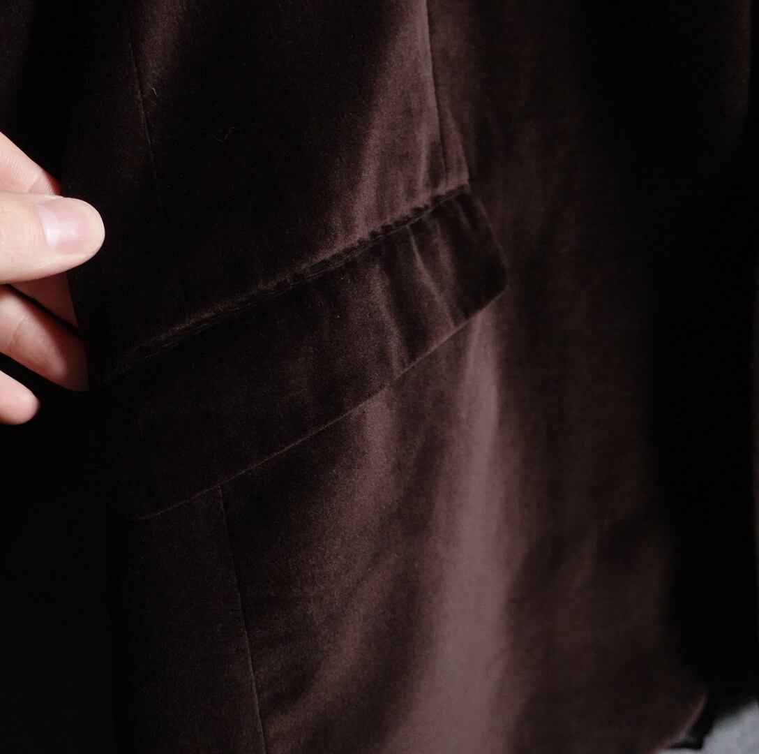 表地はコットン100%のベルベット生地で、高級感のある光沢感と起毛感があり通常のテーラードジャケットよりも暖かく、秋冬にぴったりな生地感です。