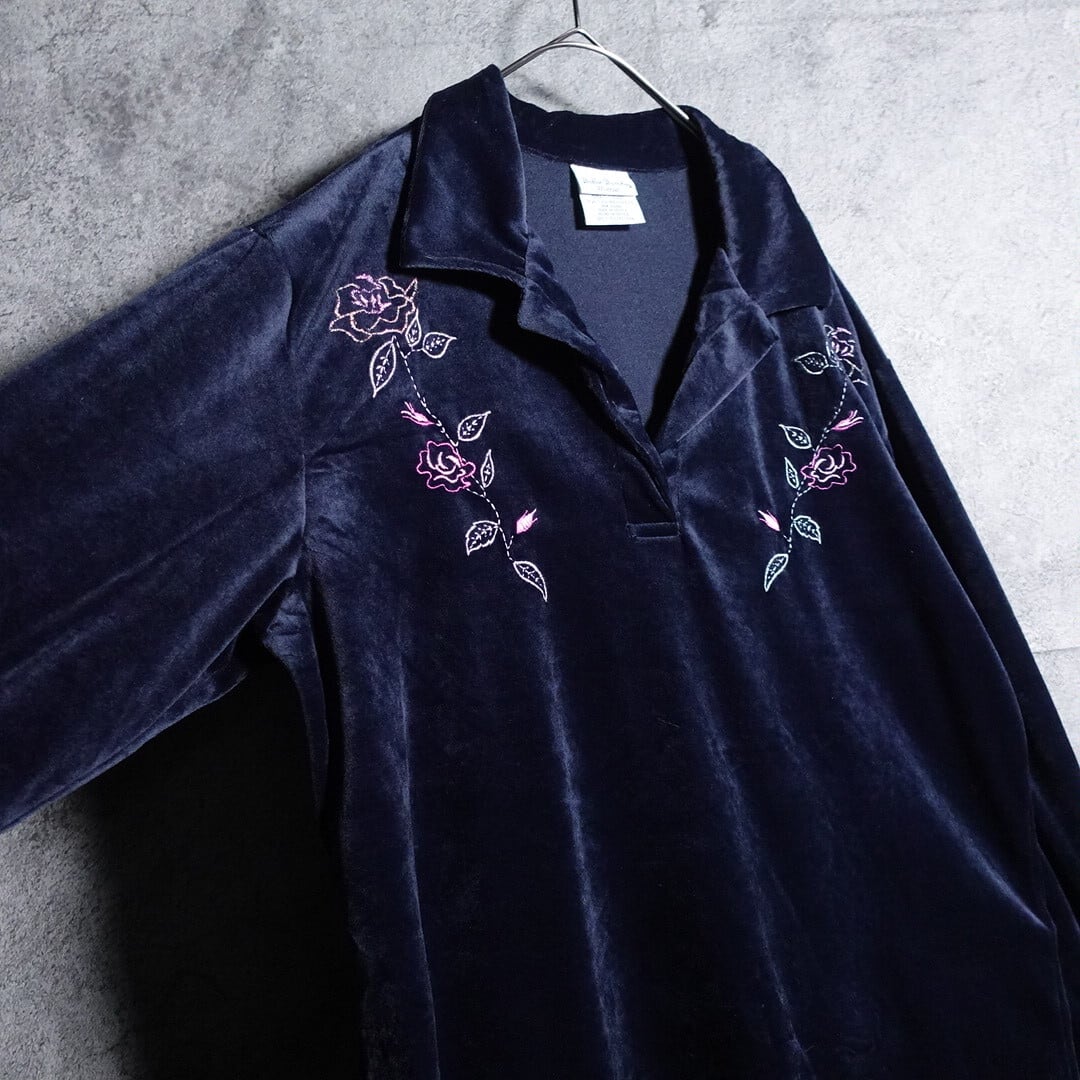薔薇刺繍デザインのベロアシャツが入荷です。
